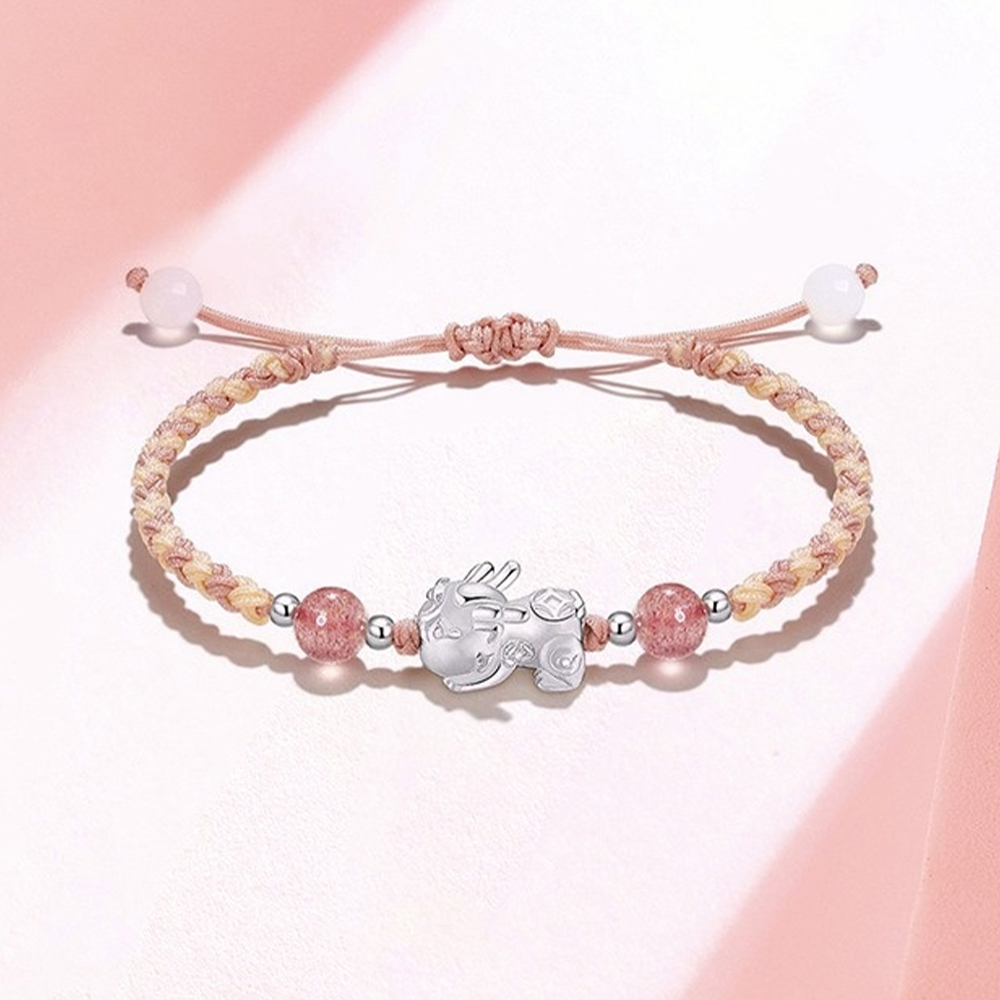 女款:草莓晶8mm,白瑪瑙6mm,貔貅14*8mm
