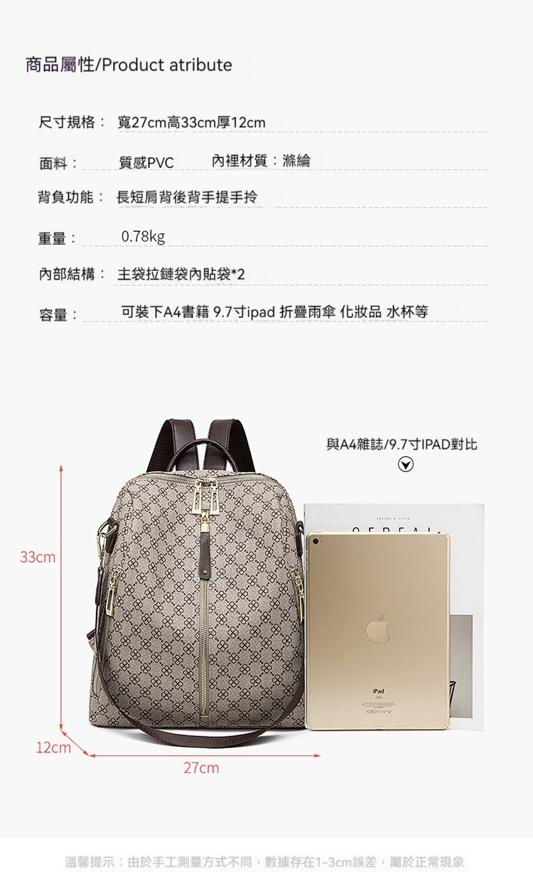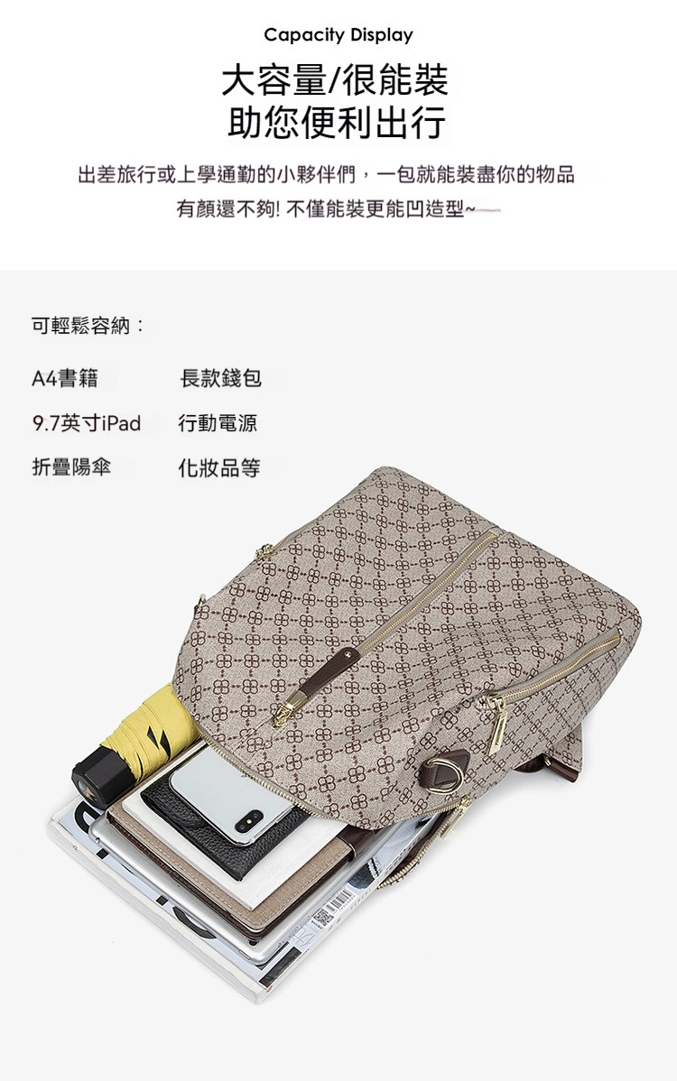 👜容量:可放A4、9.7吋iPad、長夾及其他隨身物品