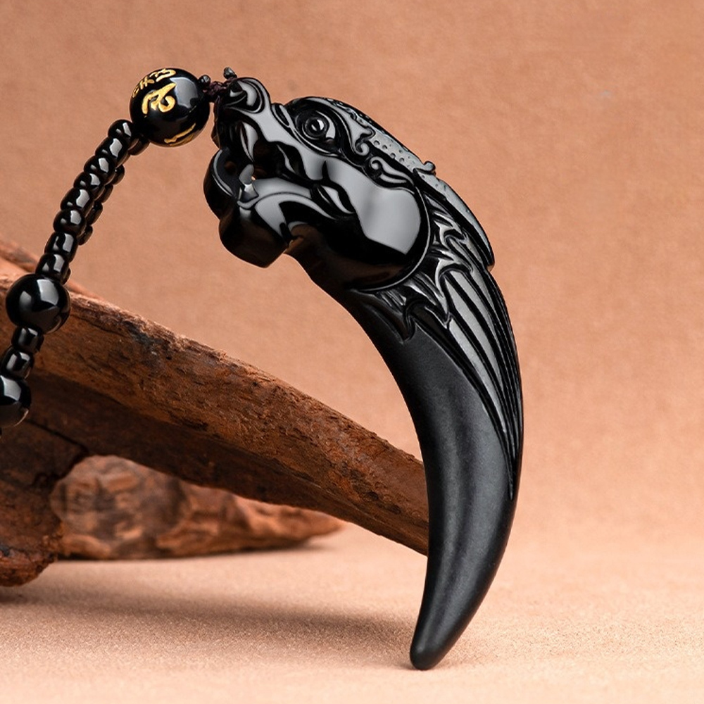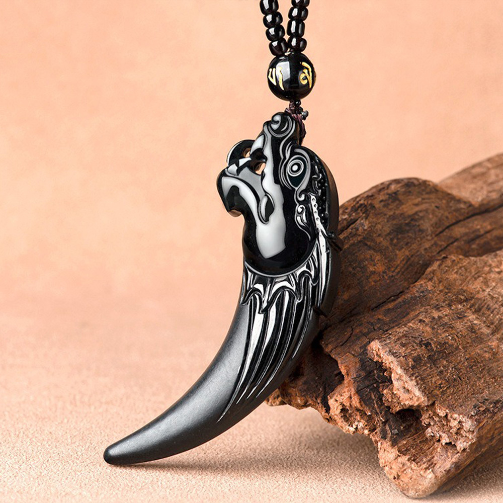龍牙吊墜 天然翡翠 墨玉項鍊 生肖龍 玉石掛墜 飾品 男生項鍊 652