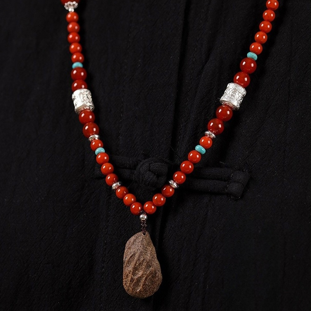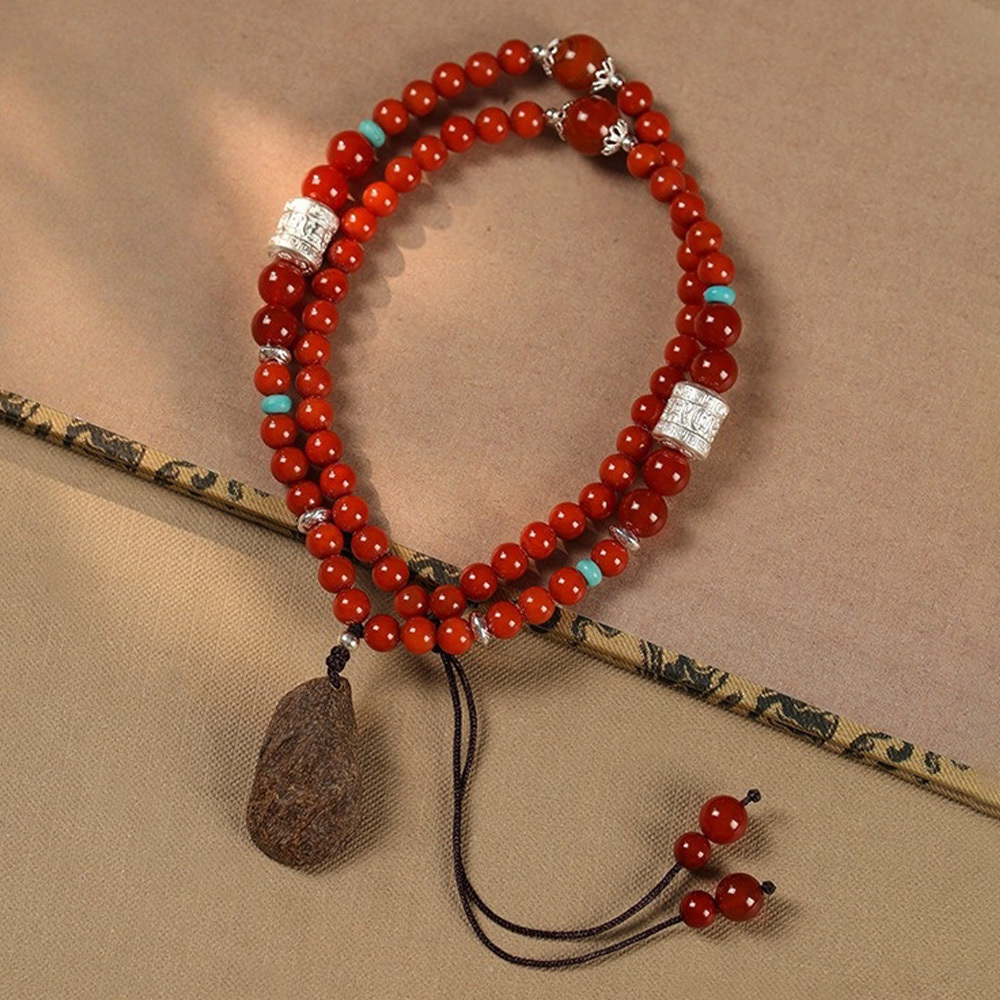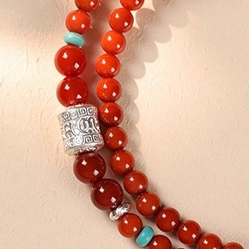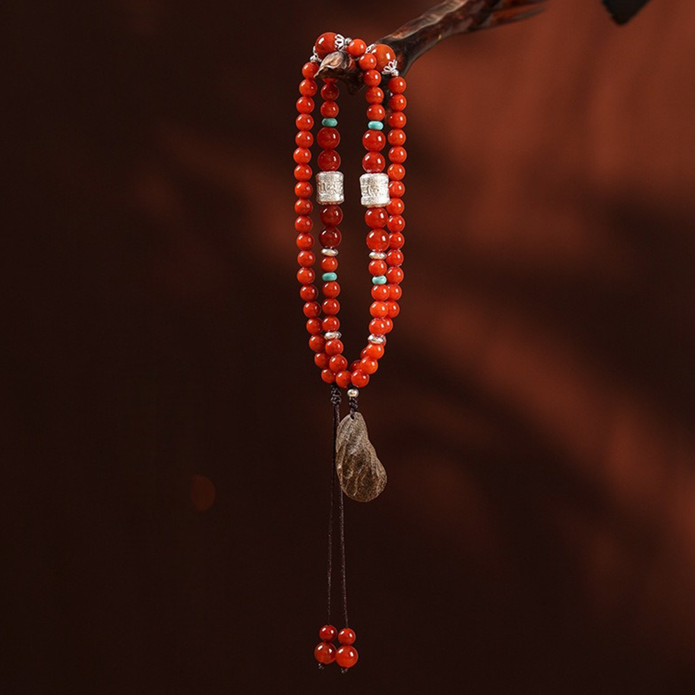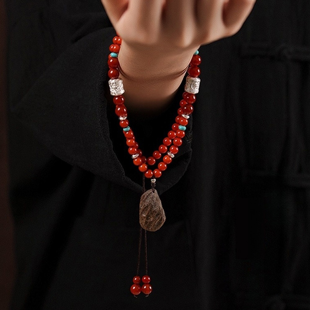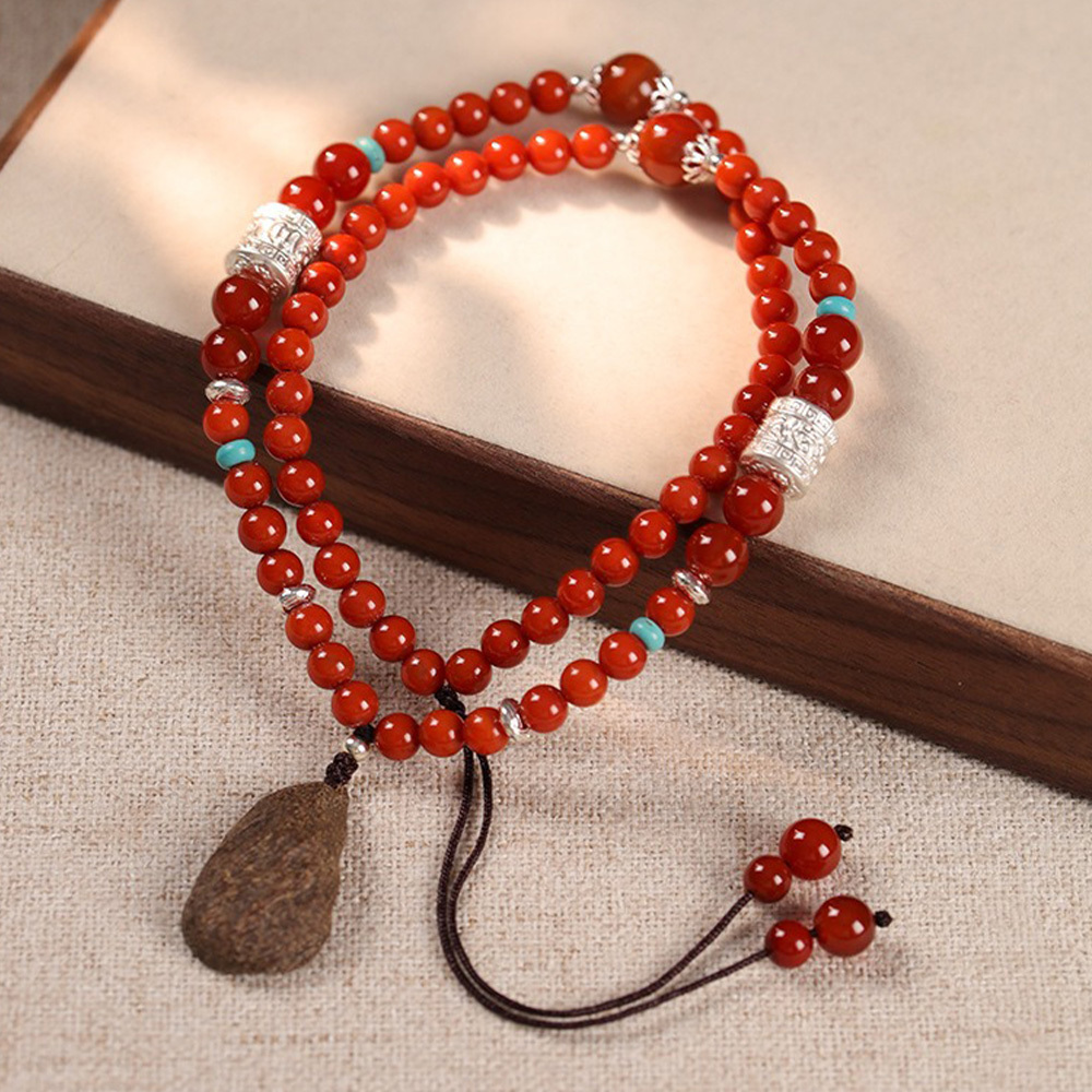 南紅瑪瑙多圈手鍊 串珠項鍊 天然石手串 圓珠手鍊 綠奇楠沉香飾品 674
