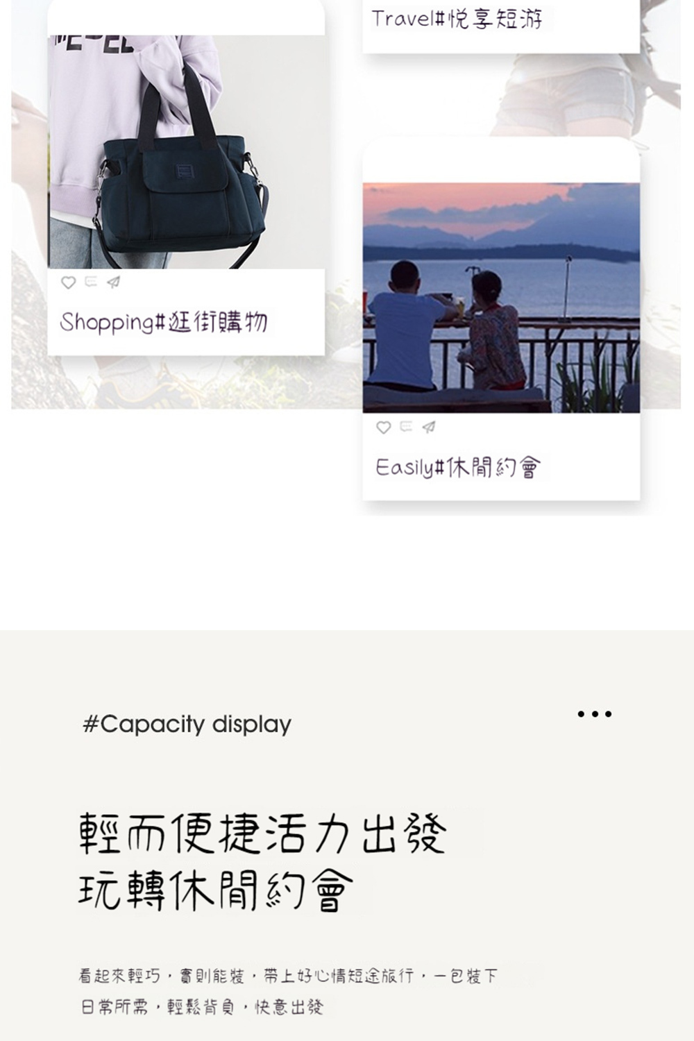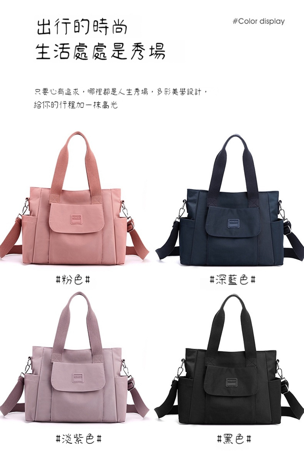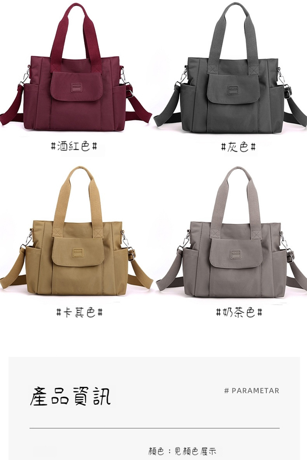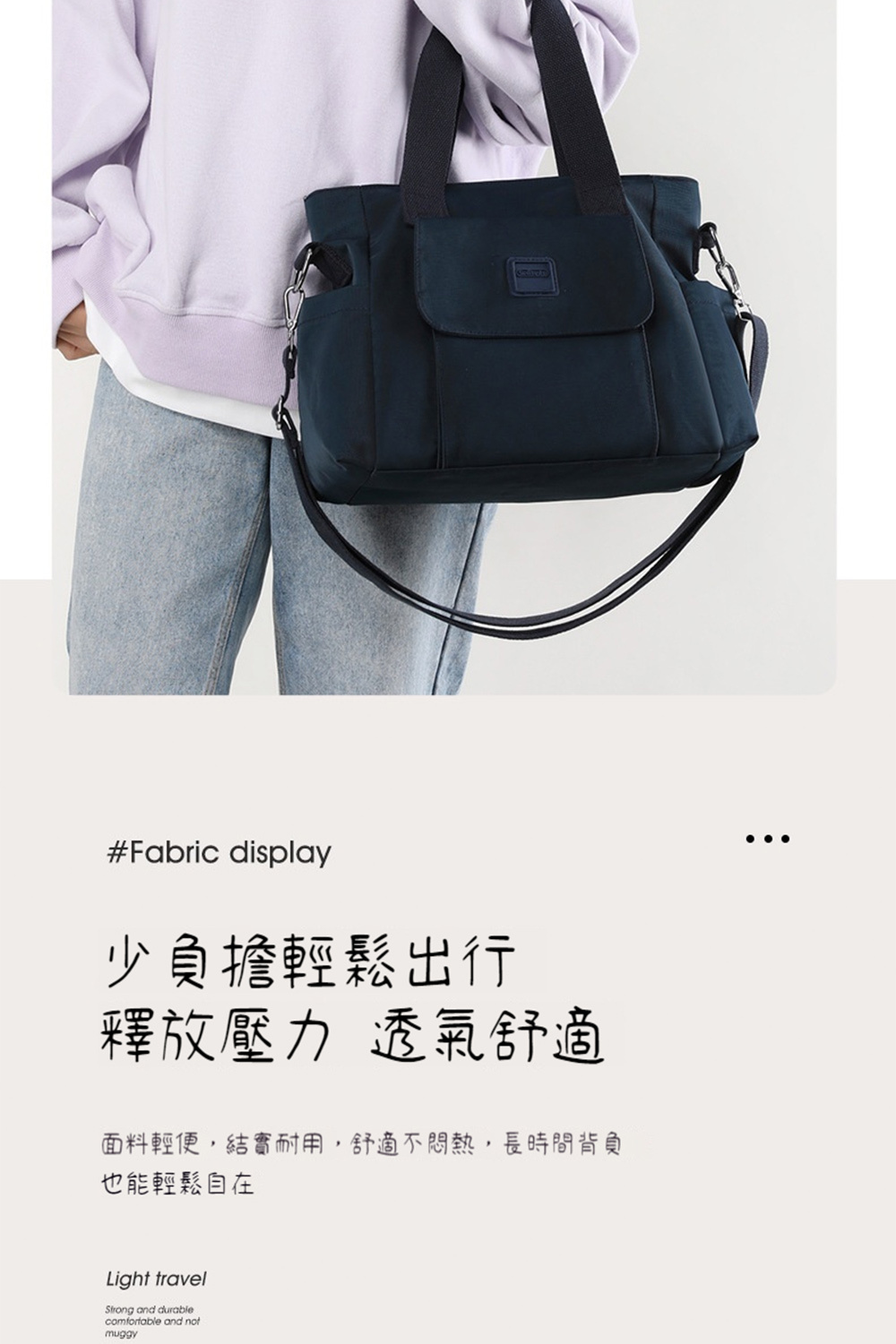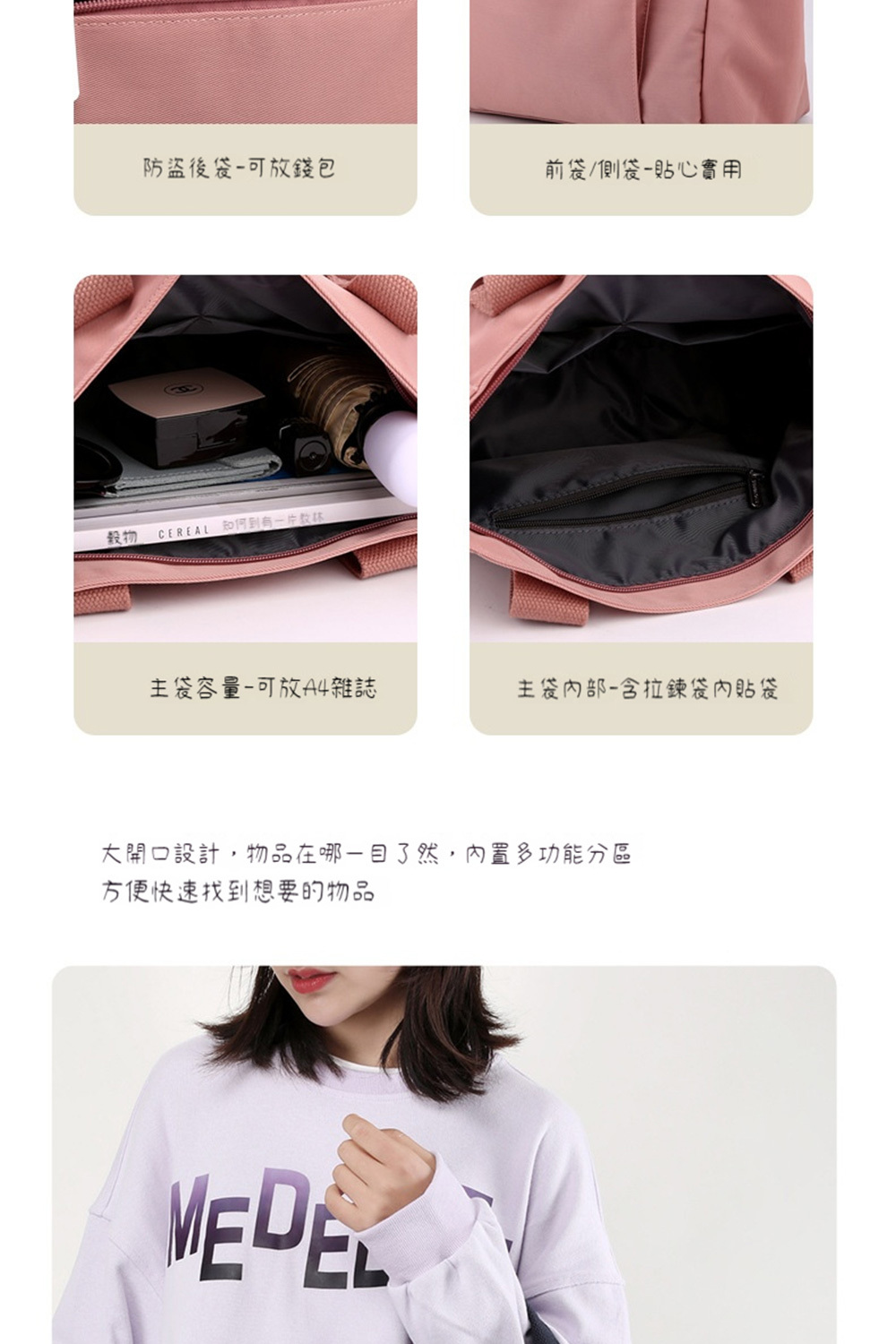 👜結構:1個磁扣外貼袋 1個外拉鍊袋 雙側水壺袋 2個內貼袋 1個內拉鍊暗袋