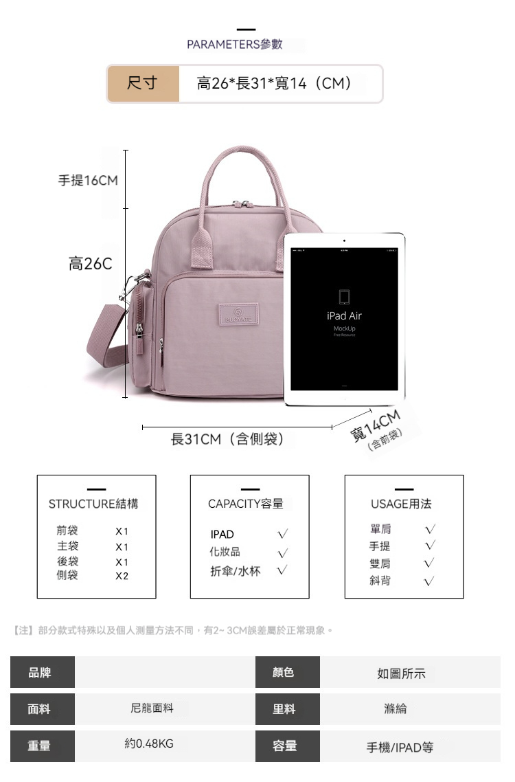 貝殼包 手提包 尼龍包包 多隔層包包 收納包 女生包包 包包 尼龍後背包 媽媽包 大容量包包 韓國包包 小眾包包 323