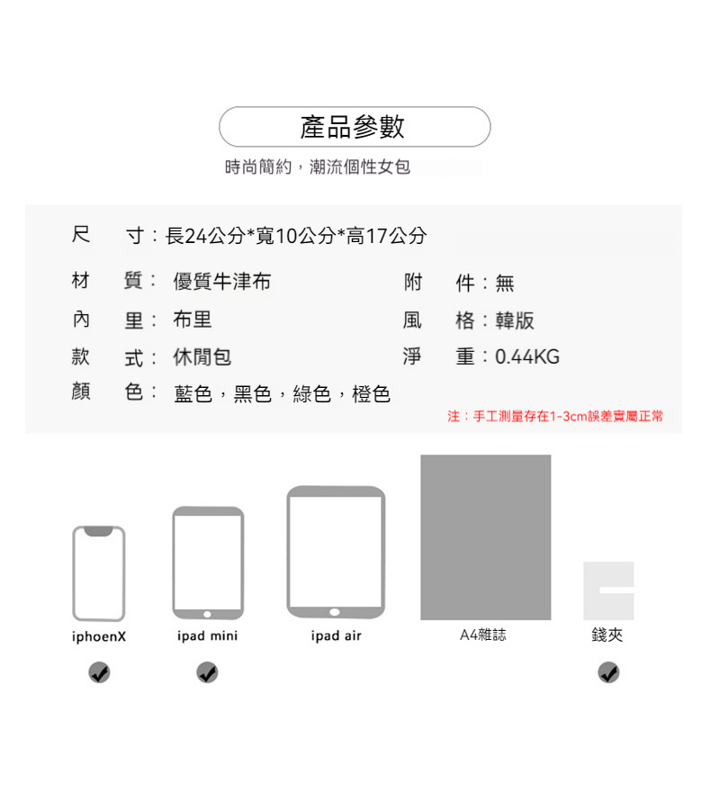👜 商品尺吋:長24公分*寬10公分*高17公分