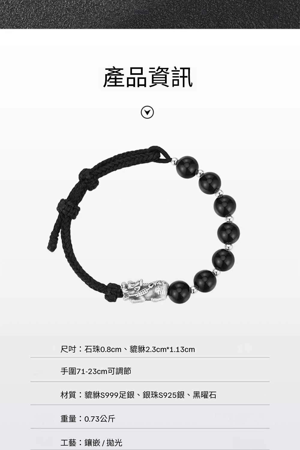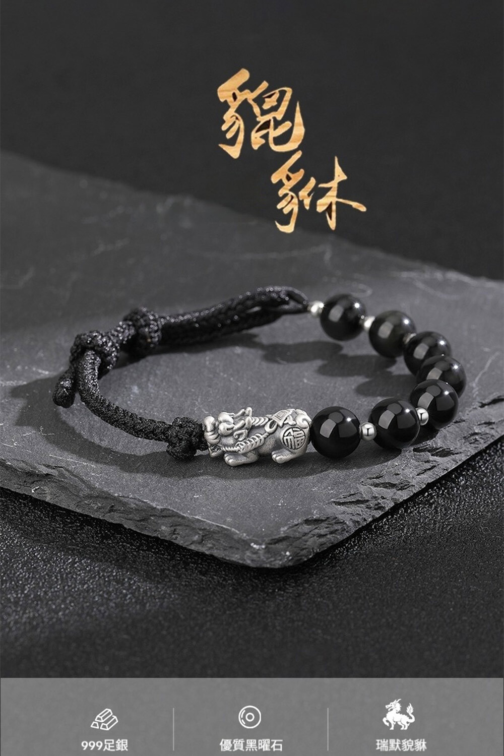 👜 材質:貔貅S999足銀、銀珠S925銀、黑曜石