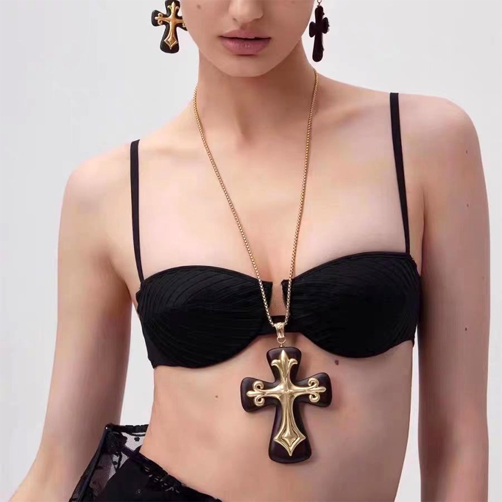✨ 商品尺吋:項鍊-鍊長42+5CM(加長鍊)、十字架吊墜長6.5CM高8CM、耳釘-約5.3*3CM