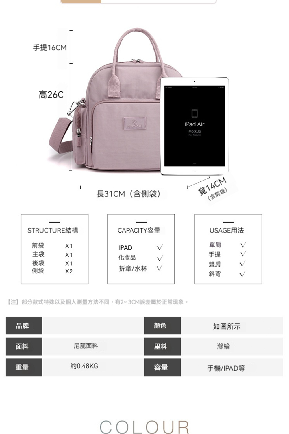 👜結構 前袋.主袋.後袋.側袋*2 內拉鏈袋. 內貼袋