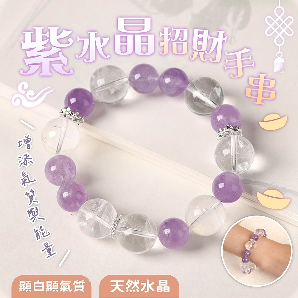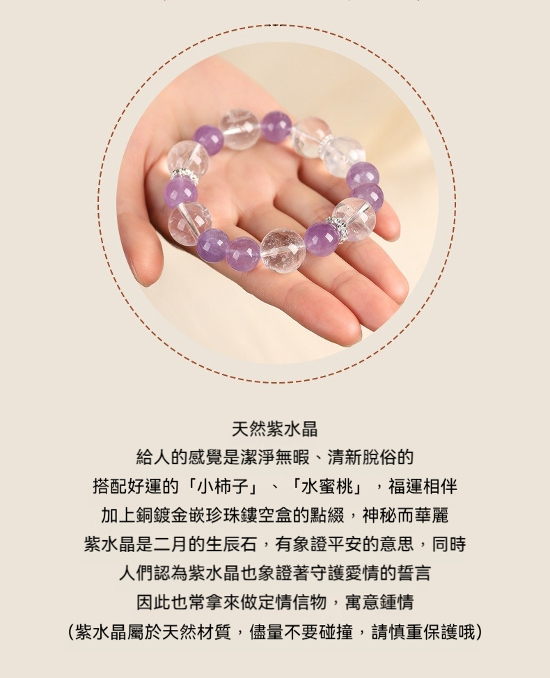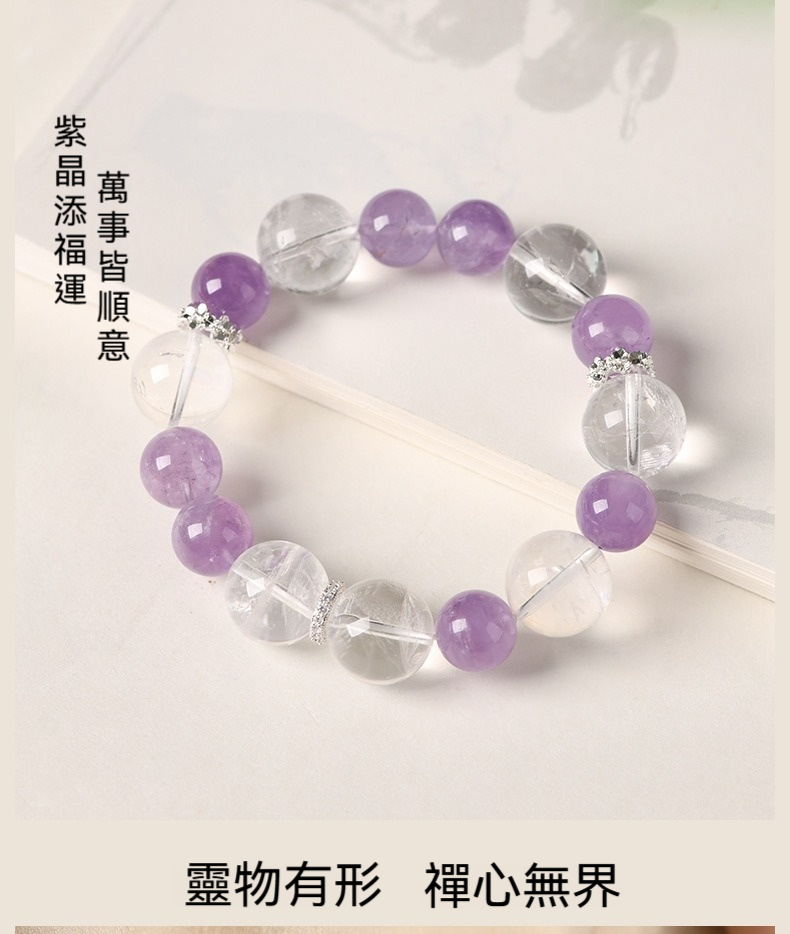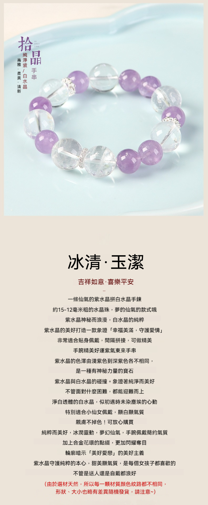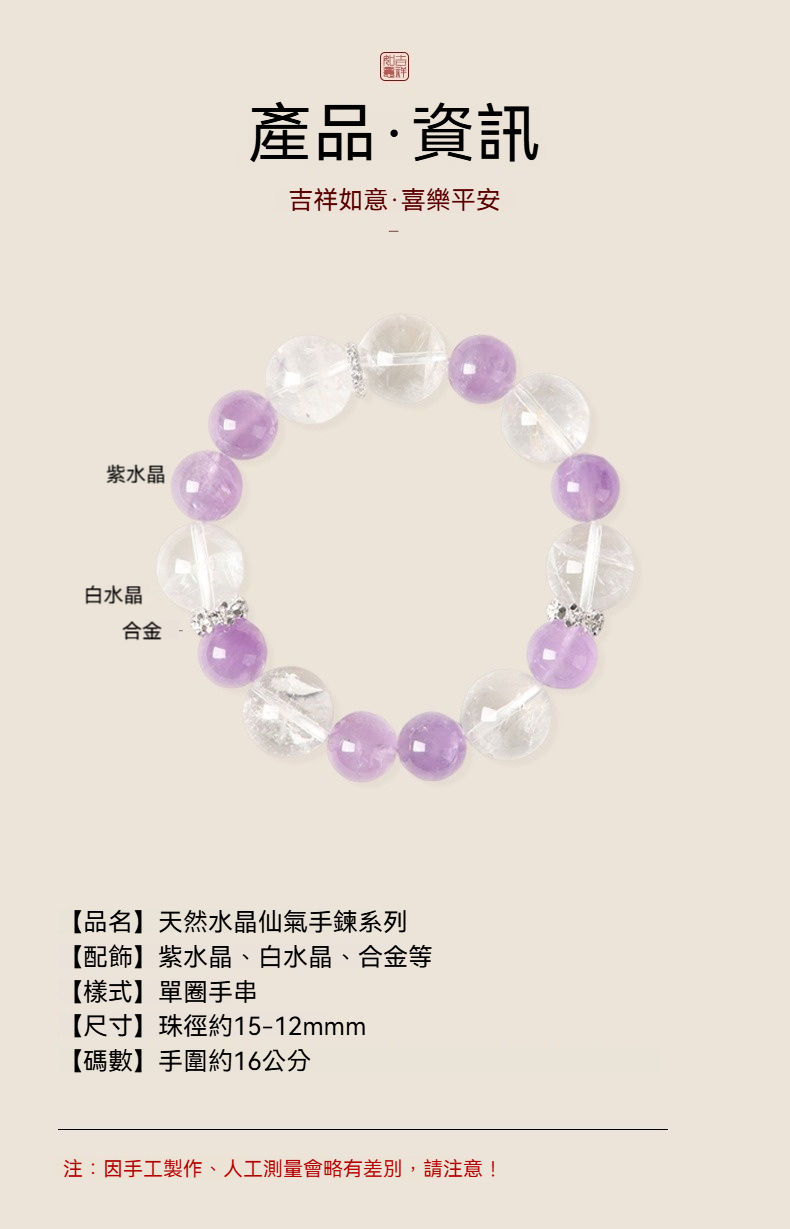 ✨ 商品尺吋:紫水晶12mm,白水晶15mm,合金約8*3mm,手圍約16公分