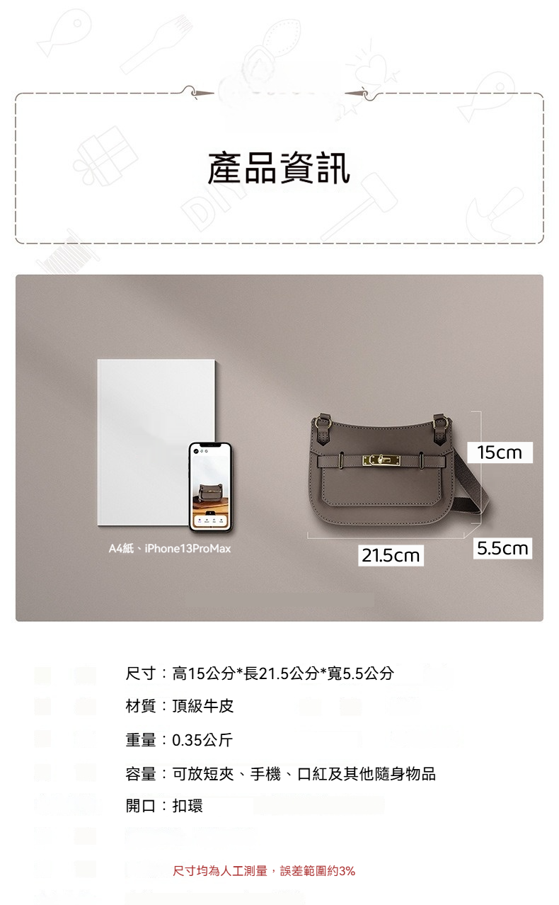 👜容量:可放短夾、手機、口紅及其他隨身物品