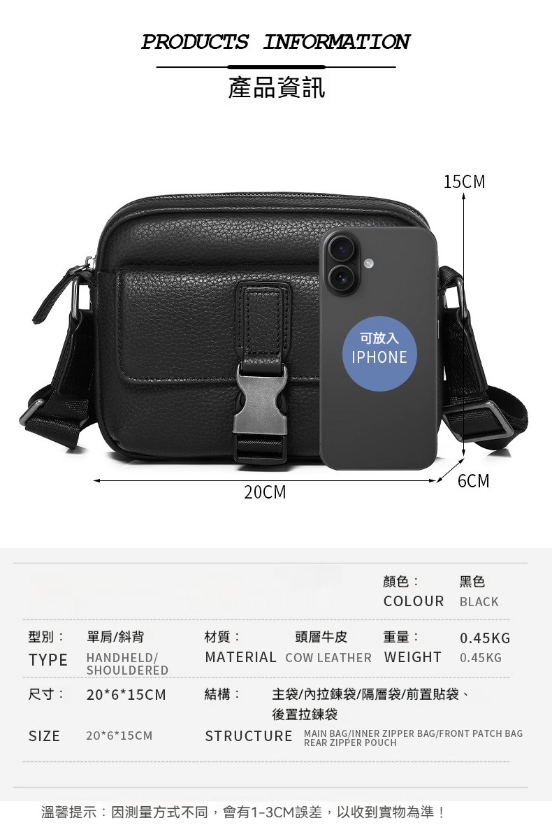 👜容量:可放手機、護照、長夾及其他隨身物品