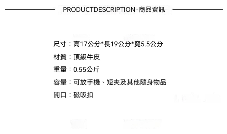 👜容量:可放手機、短夾及其他隨身物品