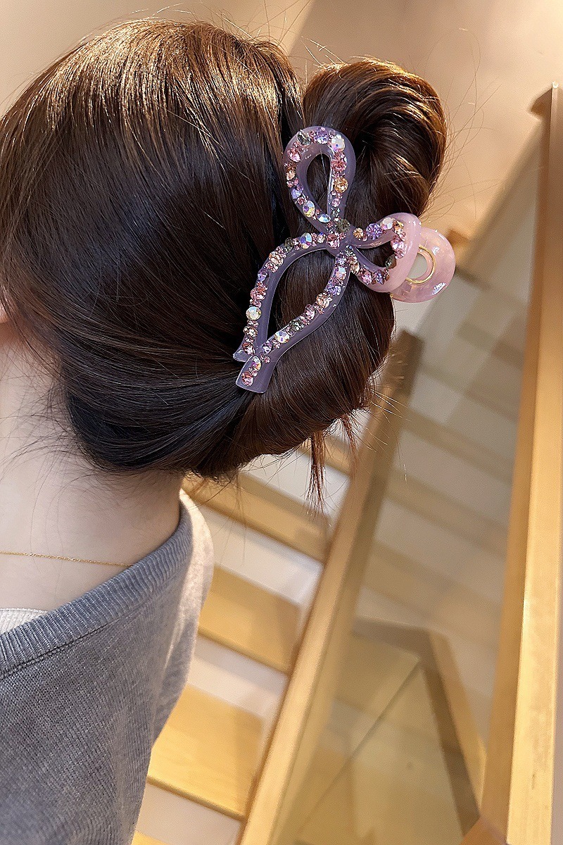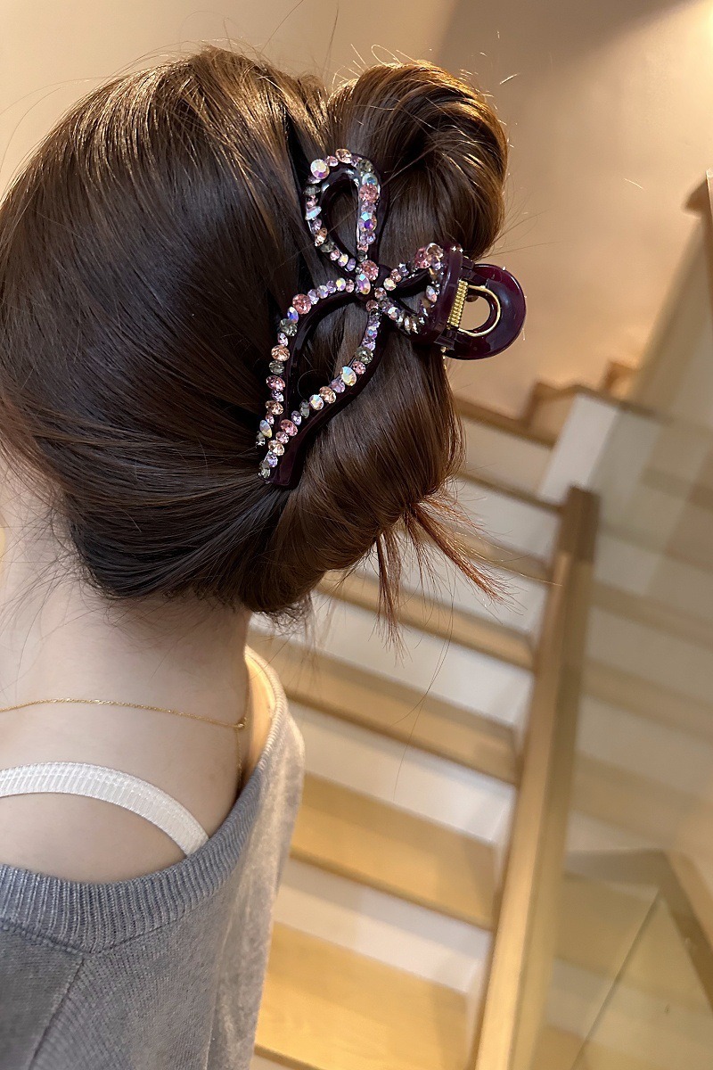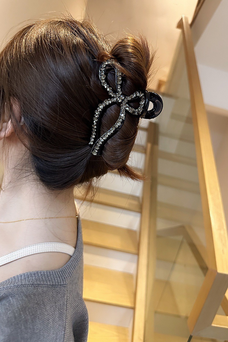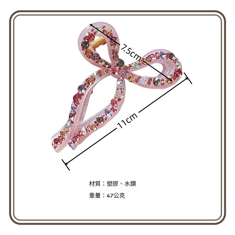 蝴蝶結 水鑽抓夾 髮夾 百搭 後腦勺抓夾 盤髮神器 髮飾 飾品 鯊魚夾 抓夾 大鯊魚夾 女生抓夾 小香風 高級感 102