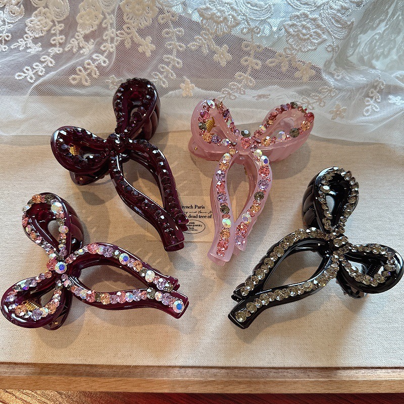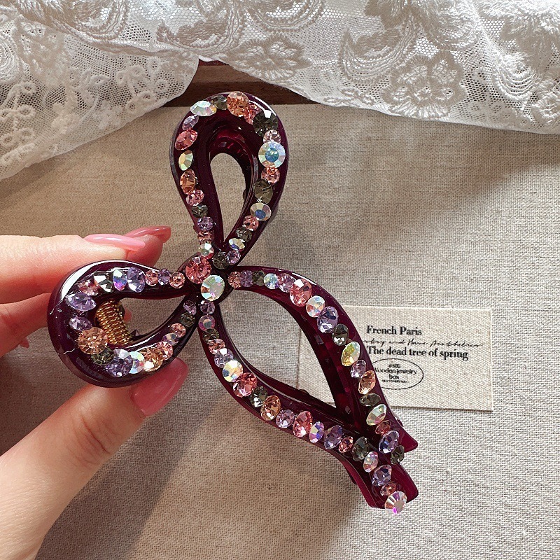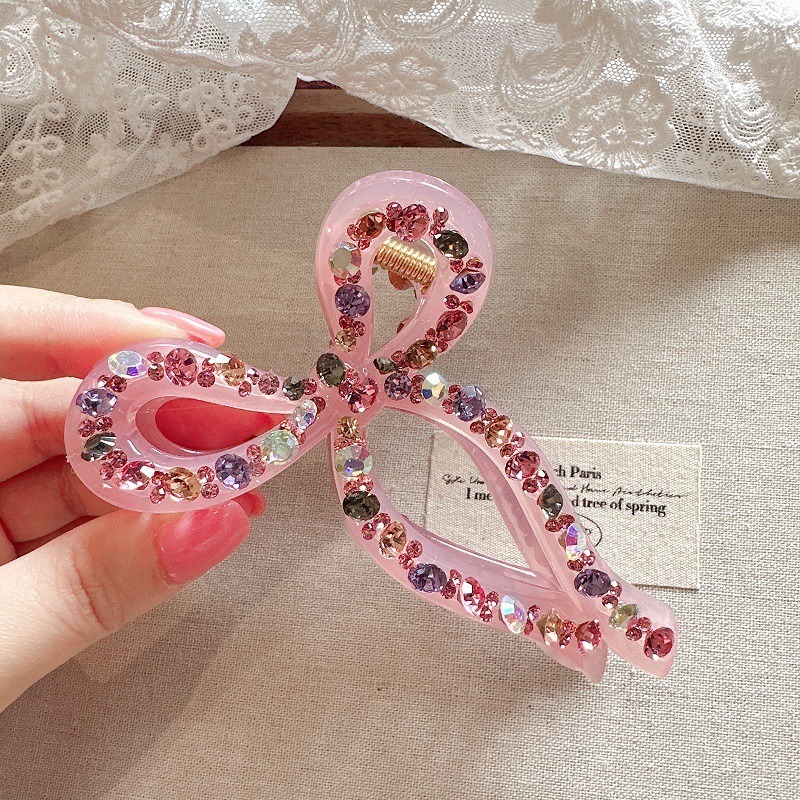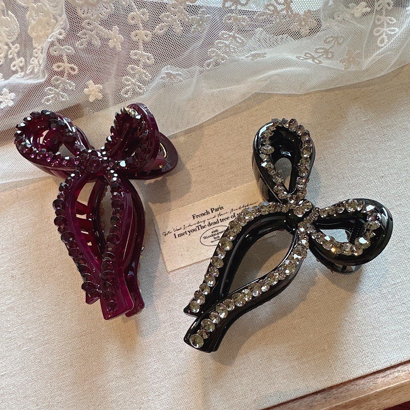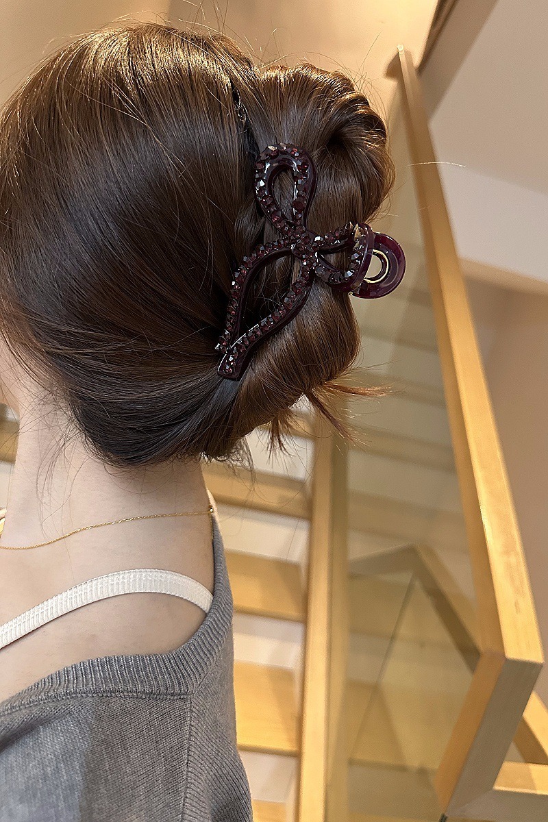 蝴蝶結 水鑽抓夾 髮夾 百搭 後腦勺抓夾 盤髮神器 髮飾 飾品 鯊魚夾 抓夾 大鯊魚夾 女生抓夾 小香風 高級感 102