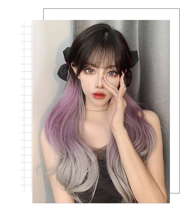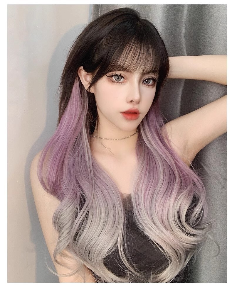 假髮 女生假髮 長髮假髮 長髮髮片 挑染假髮 假髮捲髮 紫灰色假髮 髮片 整頂假髮 無痕假髮 大波浪 高顱頂 自然157