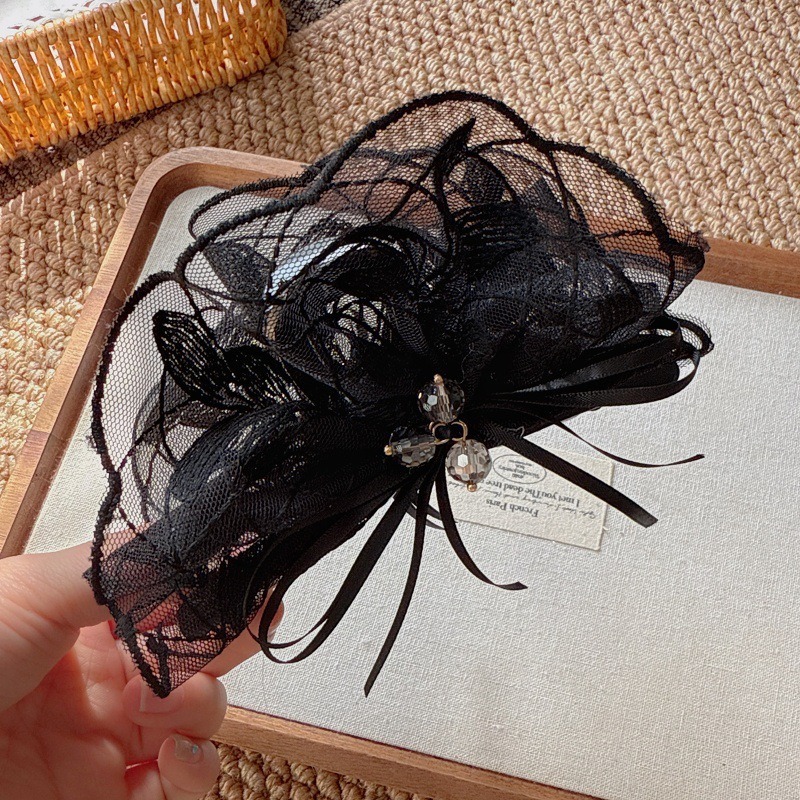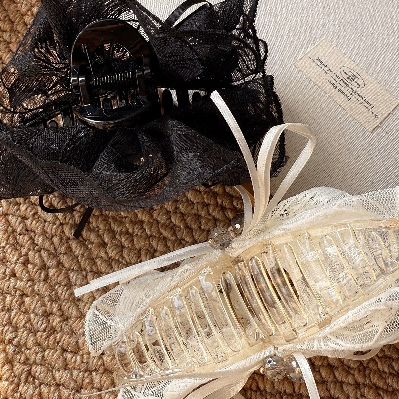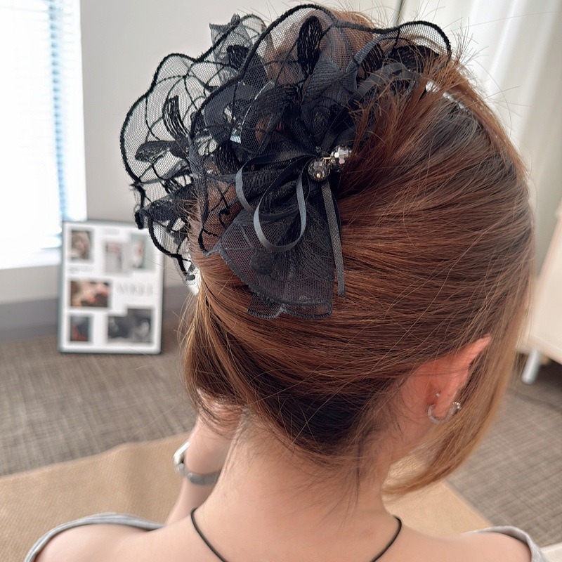 黑色蕾絲 女生髮飾 飾品 頭飾 馬尾抓夾 後腦勺夾子 盤髮夾 夾子 大號 蝴蝶結 蕾絲 抓夾 鯊魚夾 髮夾 髮飾 121