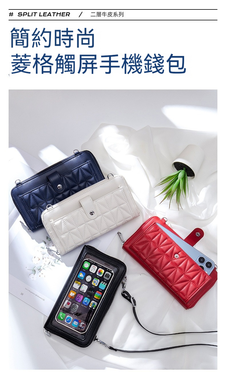 包包 側背包 長夾 側背錢包 小包包 觸屏手機包 多功能側背包 散步包 真皮包包 手機包 白色包包 禮物 菱格包 116