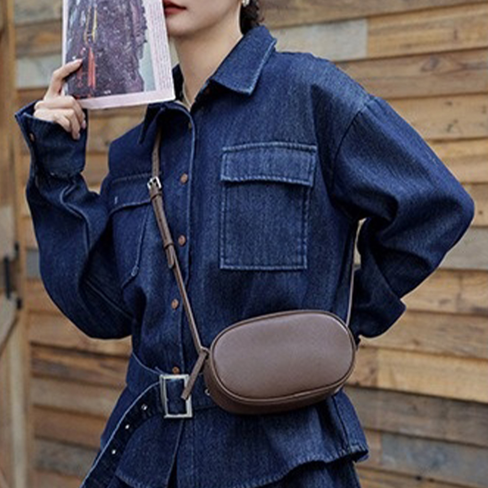 橢圓斜背包 牛皮肩背包 輕便隨身包 小款迷你包 手機包 真皮包 包包 1048