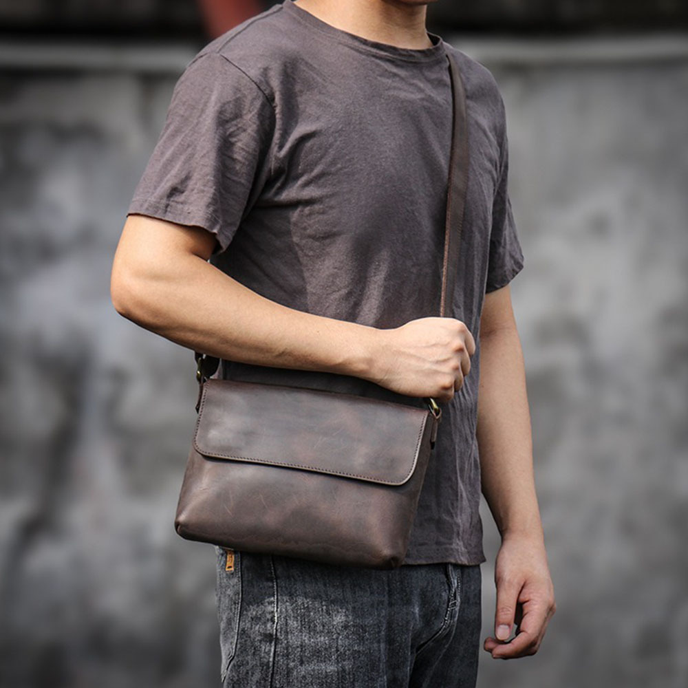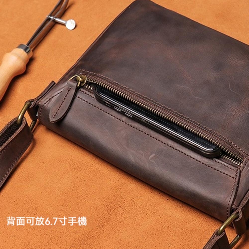 復古斜背包 牛皮側背包 真皮單肩包 大容量側背包 ipad包 攜便包 高級感 韓國真皮包 情侶包包 送男友 禮物 042