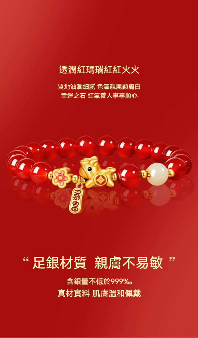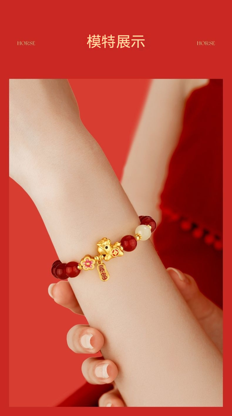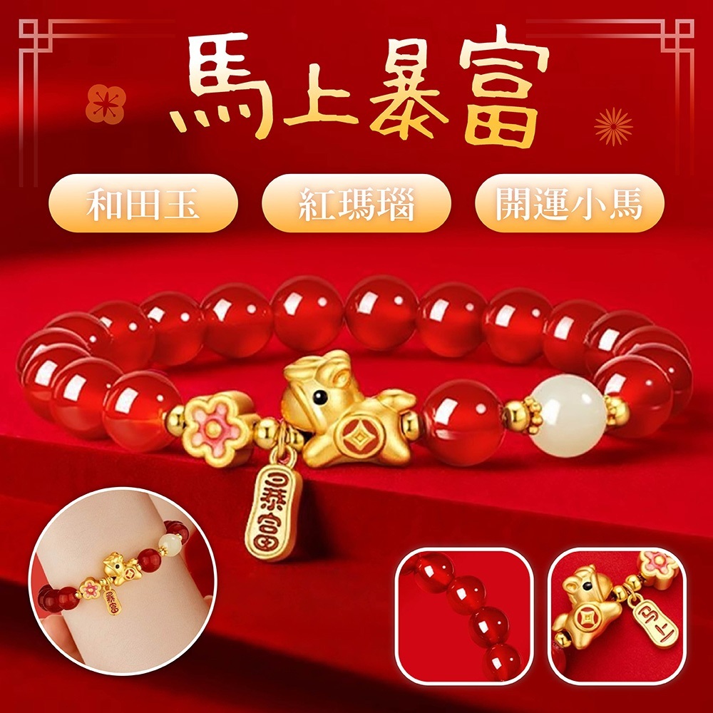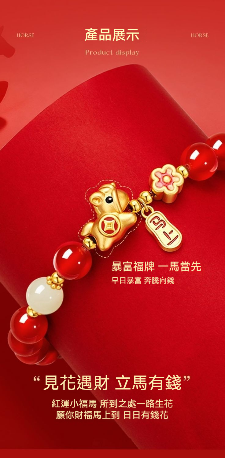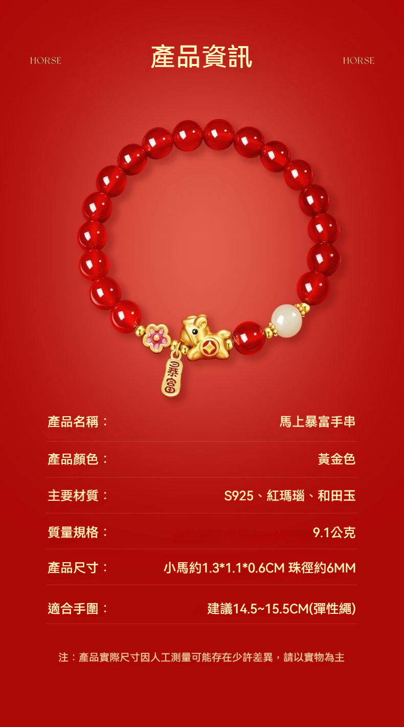 👜商品尺吋:珠徑6MM;小馬 - 長1.3CM*高1.1CM*寬0.6CM ;手圍建議14.5~15.5CM(彈性繩)