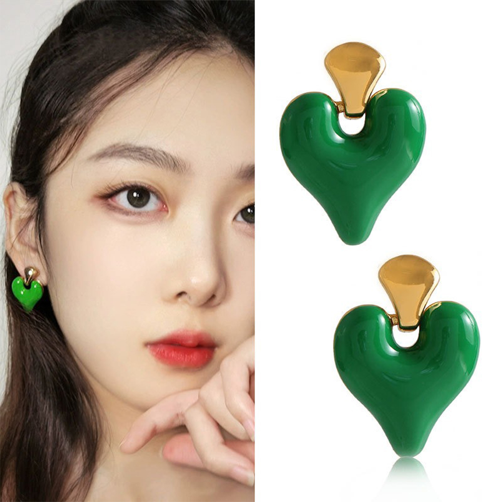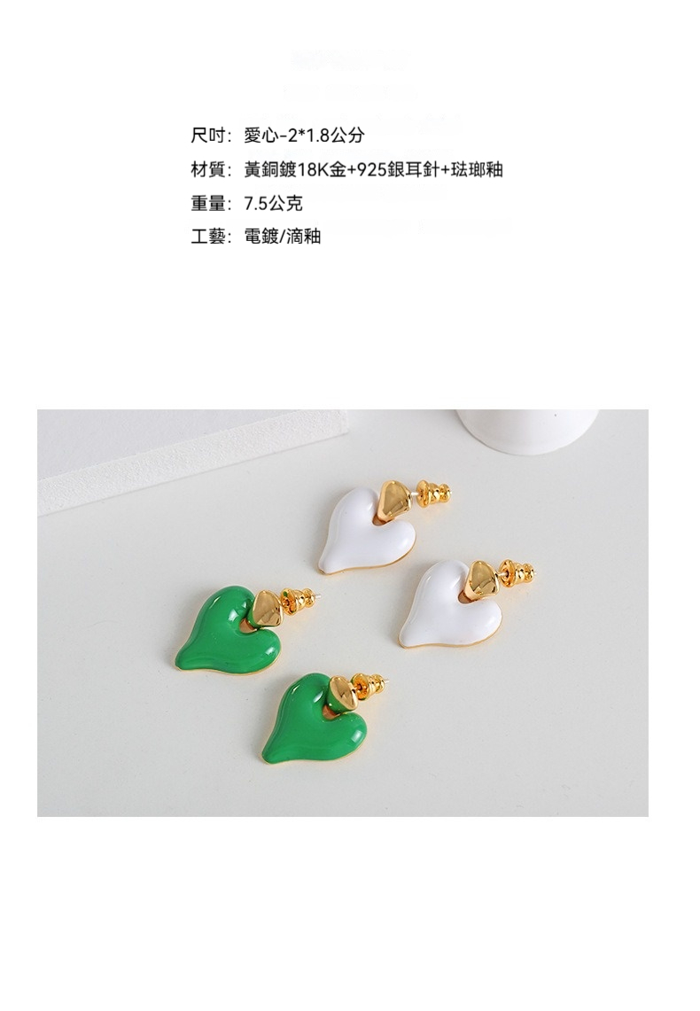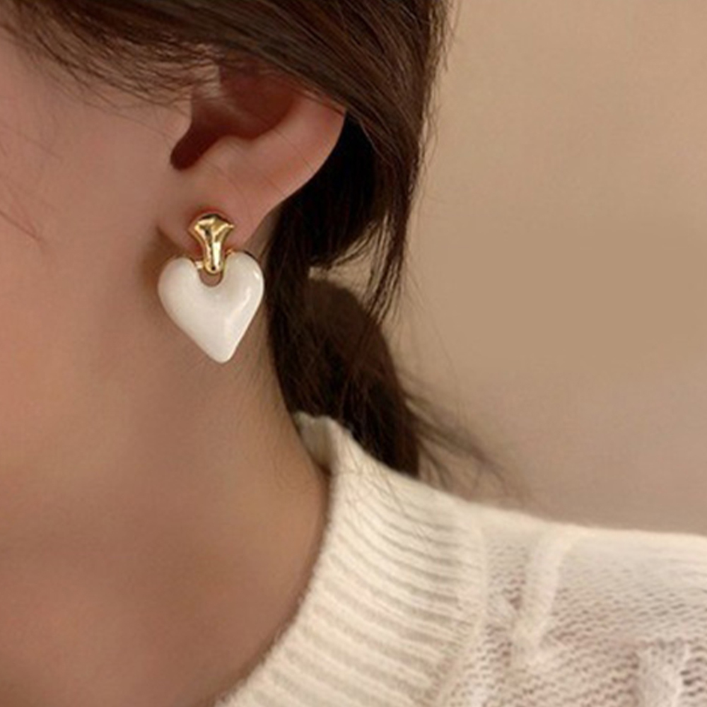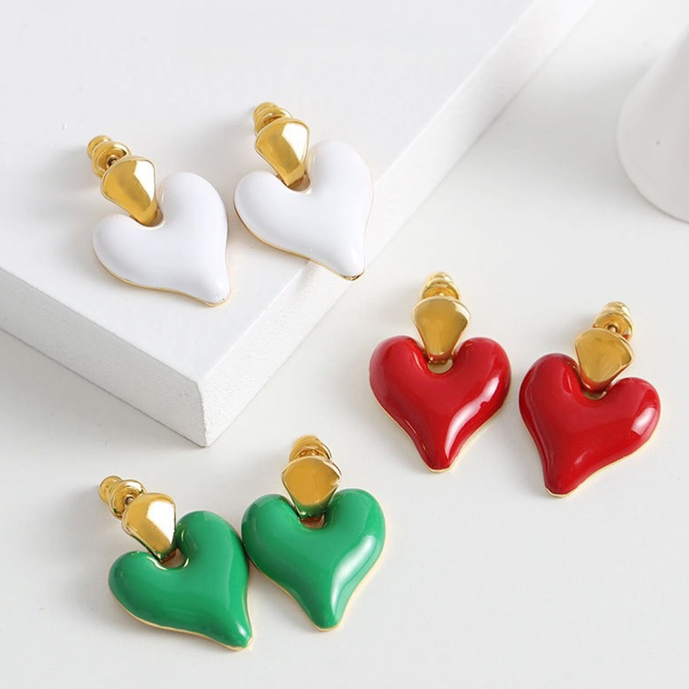 耳環 心型耳環 琺瑯耳環 飾品 925銀針 吊墜耳環 配飾 歐美風 ins風 復古耳環 桃心耳環 女生耳環 耳墜 078