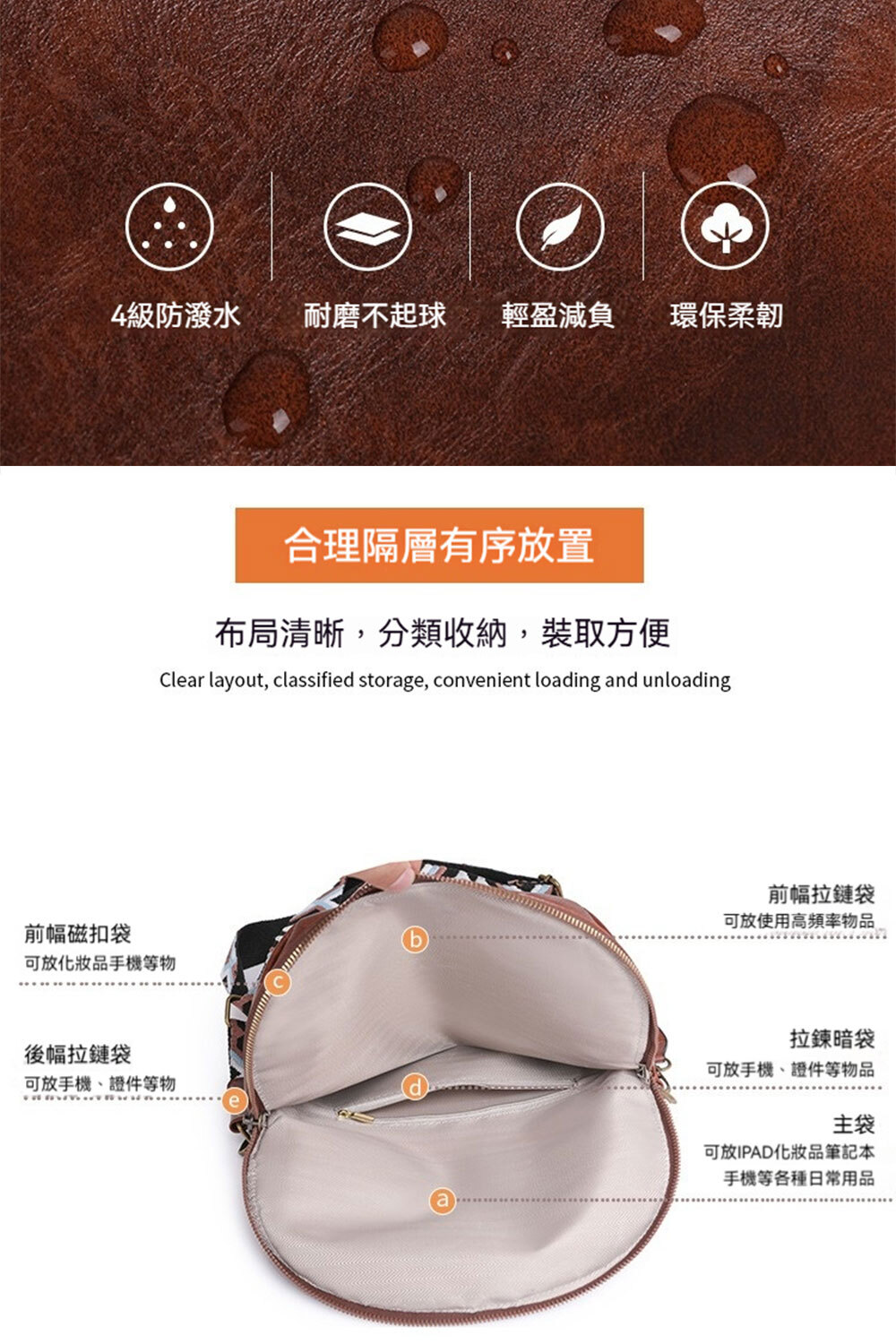 👜結構:背部拉鍊袋、前幅拉鍊袋、主袋、前幅磁扣袋