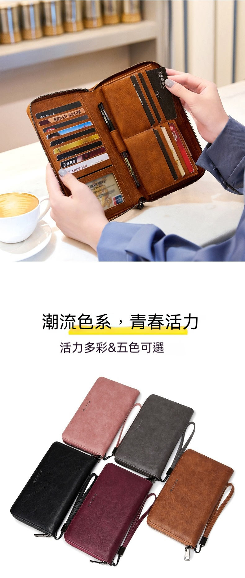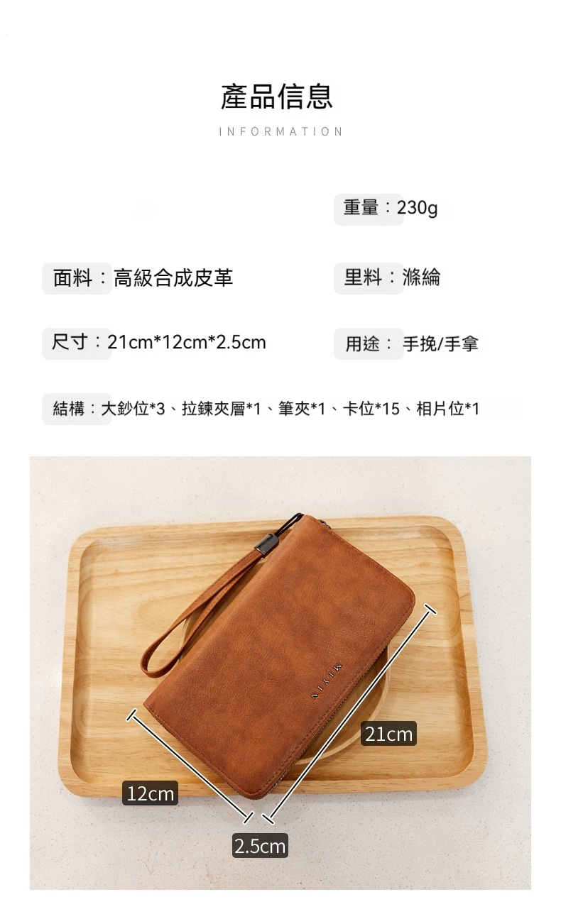 👜 結構: 大鈔位*3 拉鍊夾層*1 筆夾卡*1 卡位*15 相片位*1