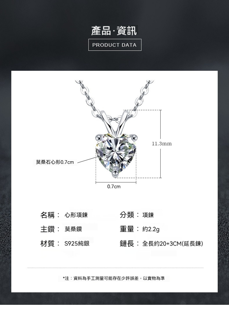 👜商品尺吋:全長約20+3CM(延長鍊)、莫桑鑽-0.7*0.7CM