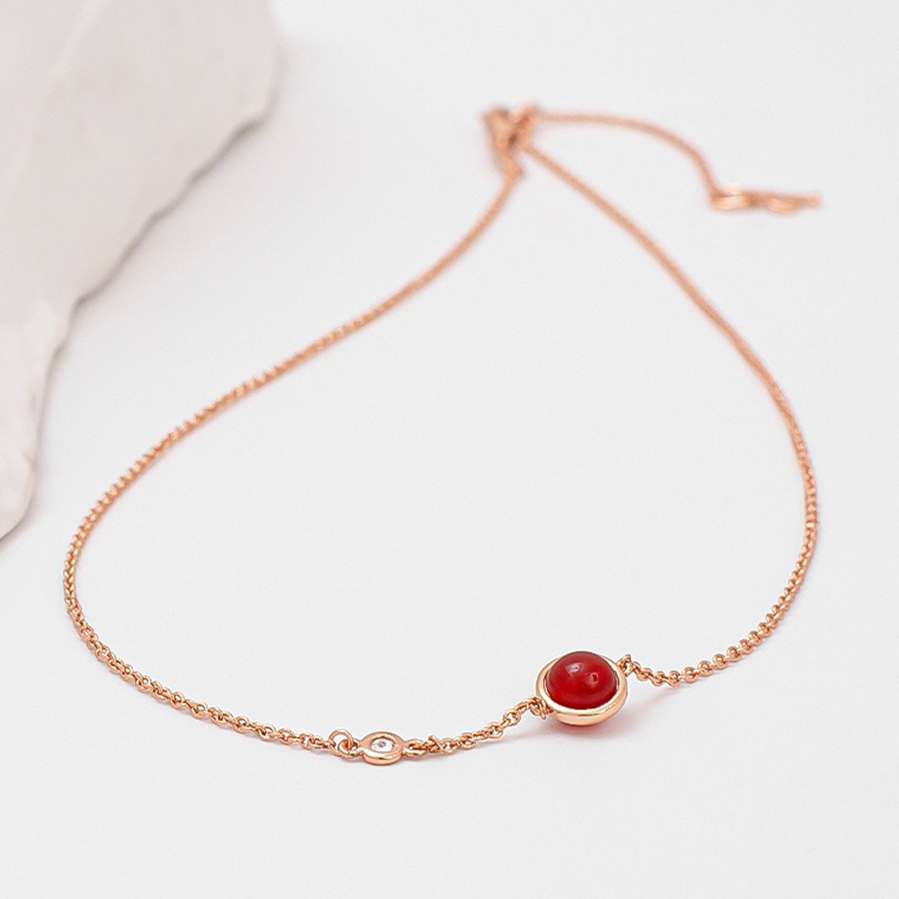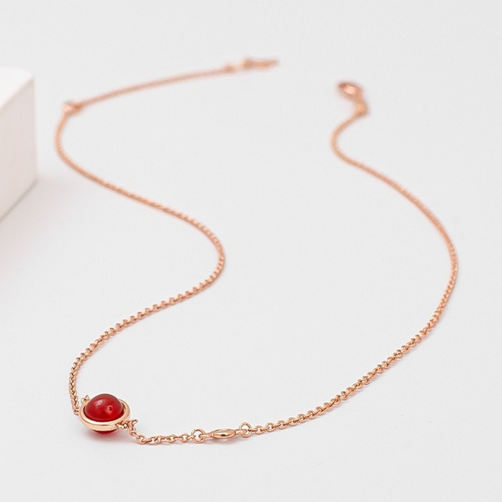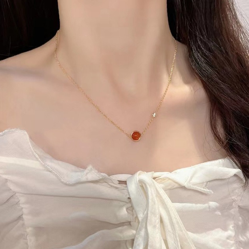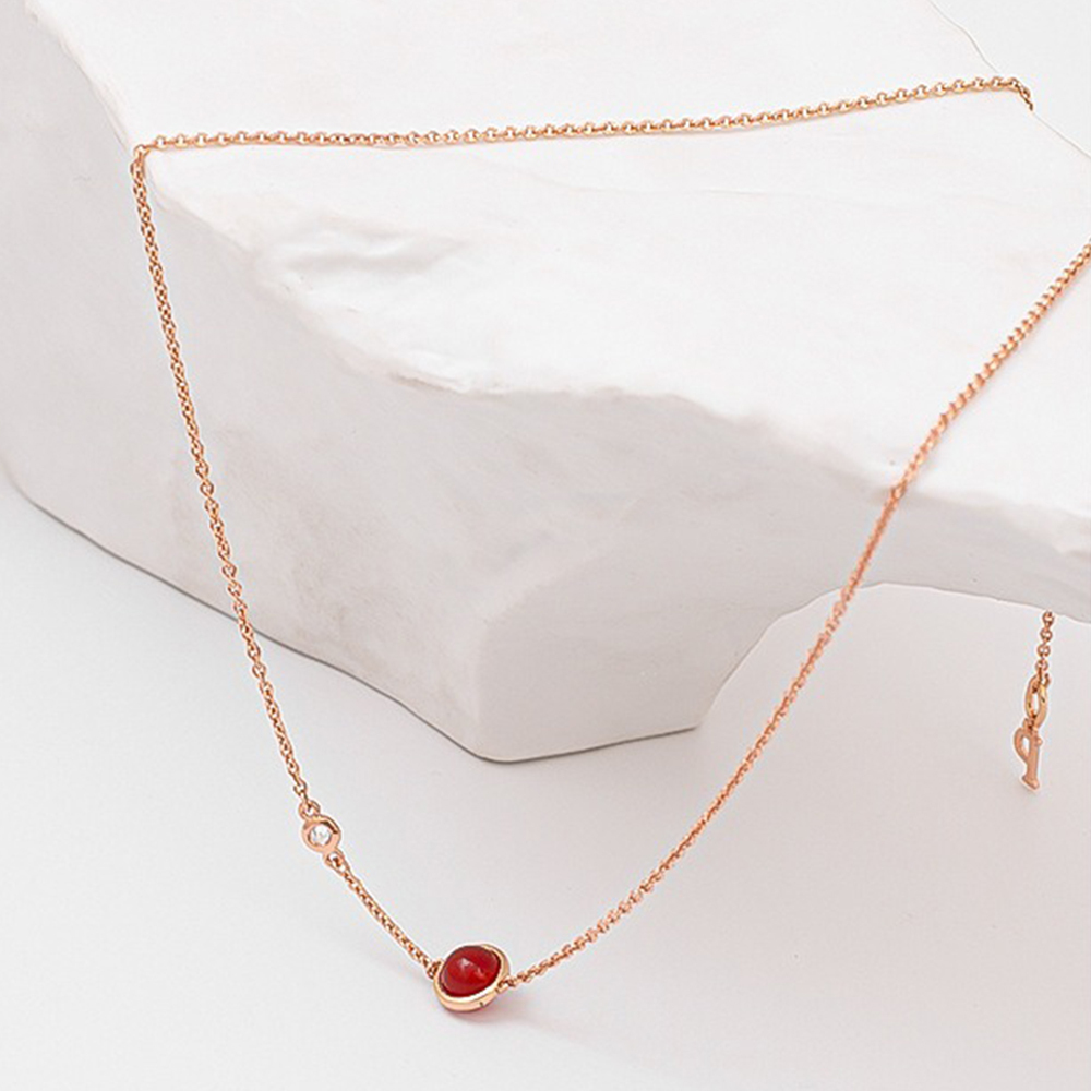 項鍊 轉運珠項鍊 玫瑰金色 鋯石項鍊 鎖骨鏈 女生項鍊 簡約 韓國項鍊 ins風 飾品 項鍊女 紅珠項鍊 配飾 535