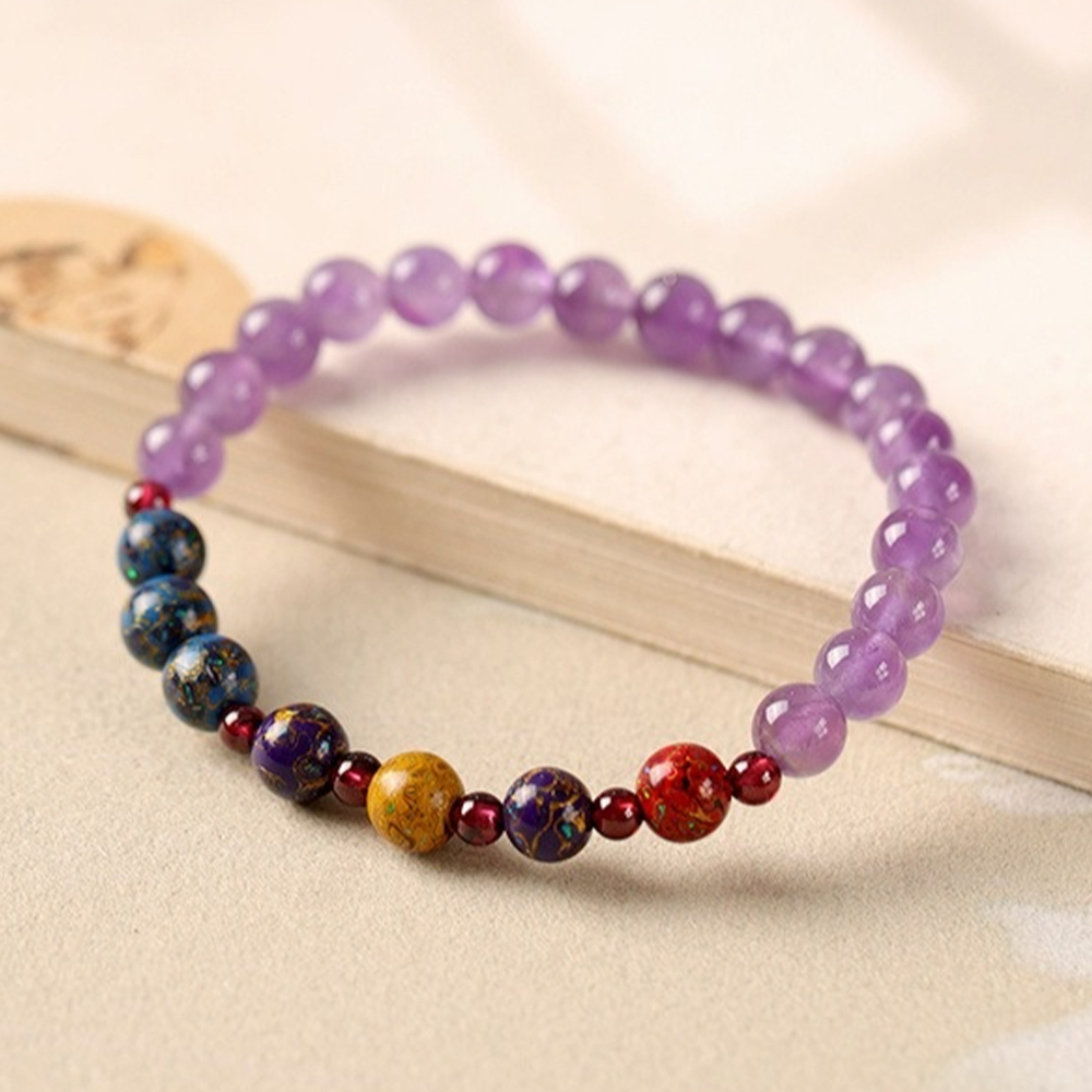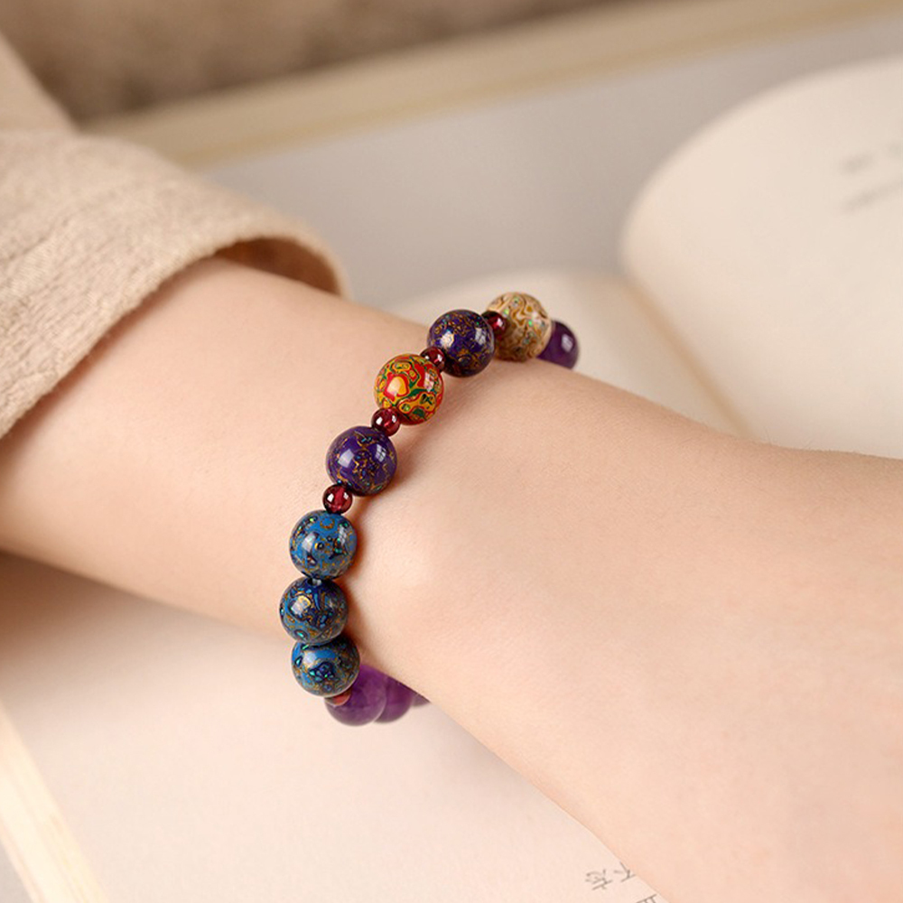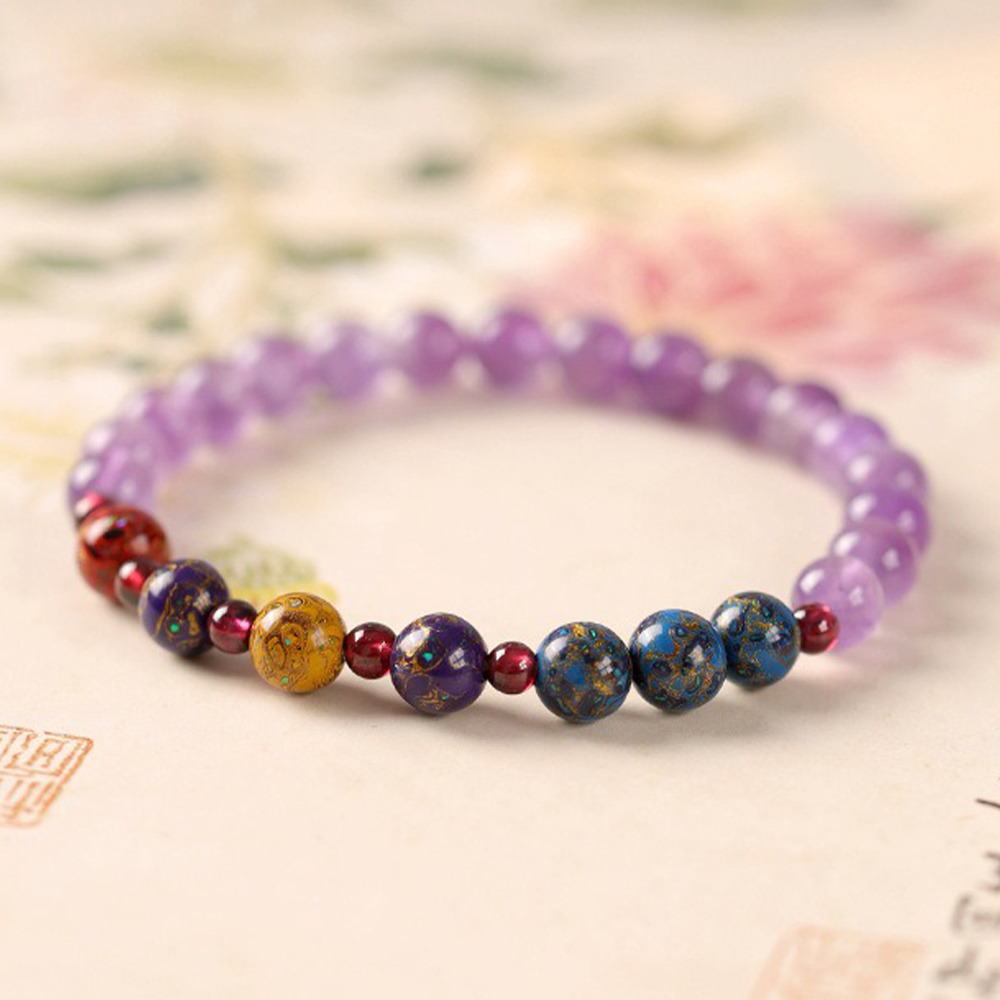 ✨ 商品尺吋:紫水晶-8mm,石榴石-4mm,大漆珠-8mm,手圍約15公分(彈性繩)