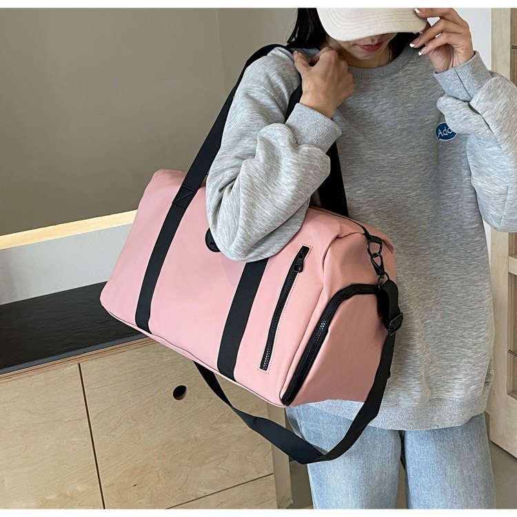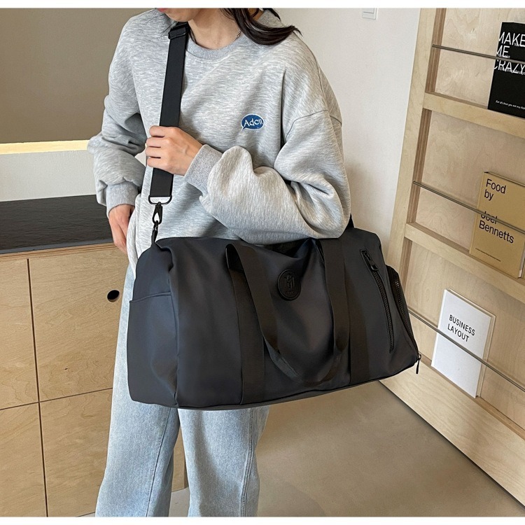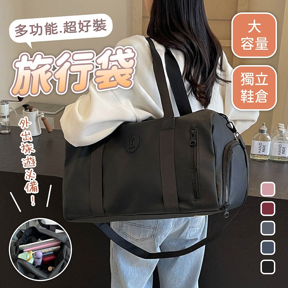 👜結構:主袋、獨立鞋位、前側拉鍊袋、側拉鍊袋+側袋(雙側都有一個有拉鍊一個沒有)、後拉鍊袋(行李拉桿袋)、內拉鍊袋