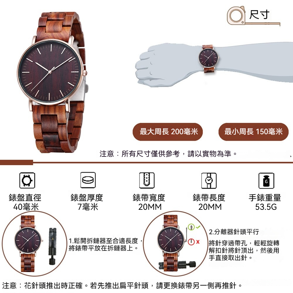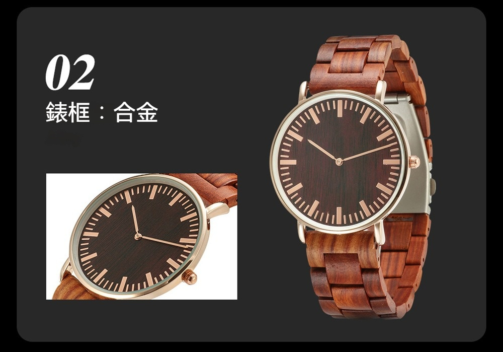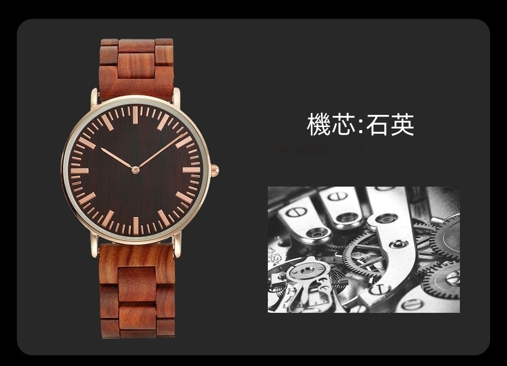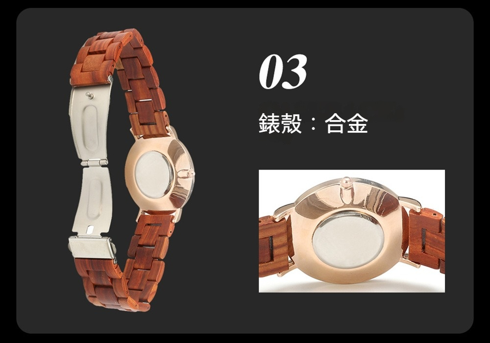 ✨ 材質:錶殼-合金,錶帶-檀木,機芯-石英