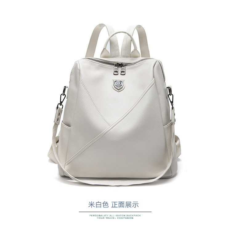 包包 後背包 女生包包 真皮後背包 白色包包 黑色包包 高級感 軟皮包包 盾牌包包 2way包 韓國包包 禮物 131