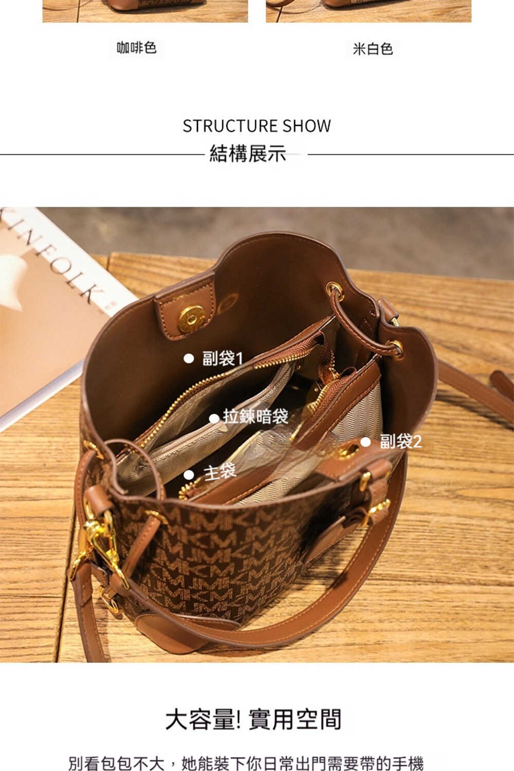 👜結構:雙主袋、拉鍊袋(含內貼袋、拉鍊內貼袋)