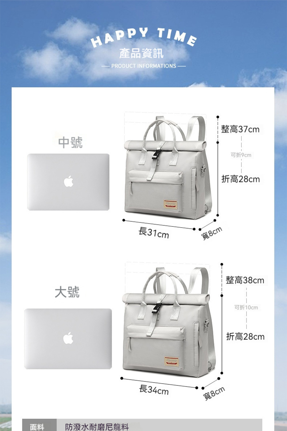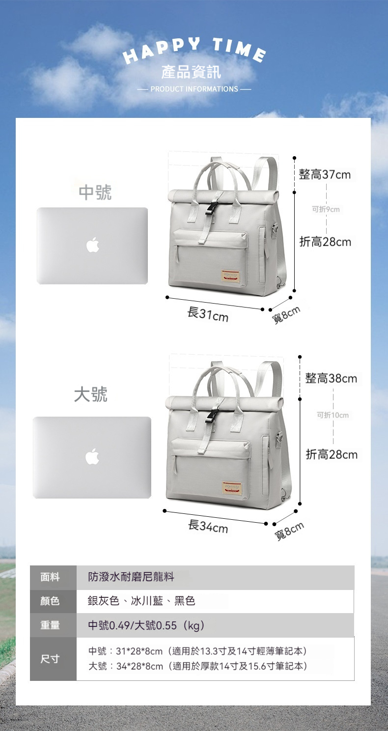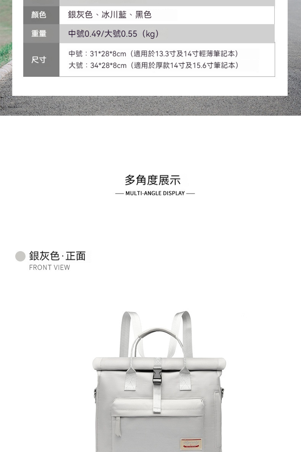 👜容量:大號可放15.6吋筆電、中號可放14吋筆電,皆可放A4、長夾及其他隨身物品