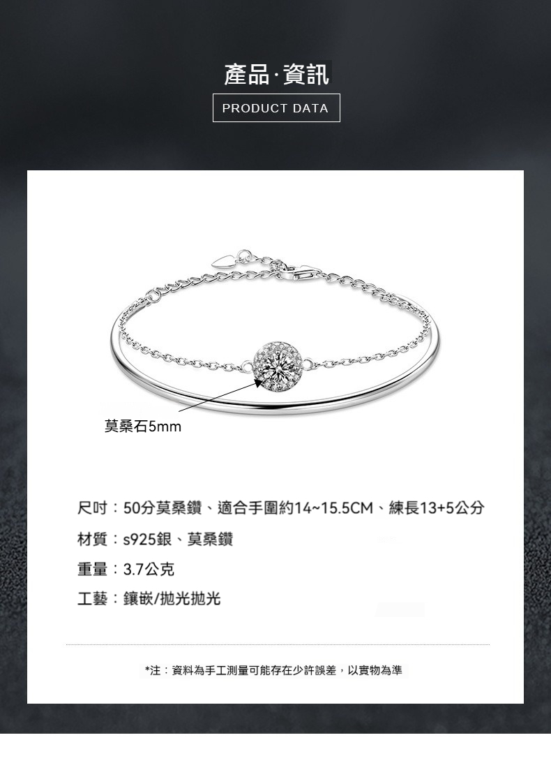 ✨ 商品尺吋:50分莫桑鑽、適合手圍約14~15.5CM、練長13+5公分