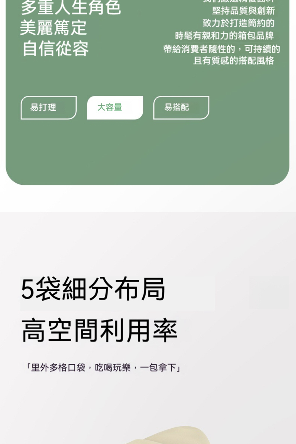 👜結構:雙主袋、內貼袋*2、拉鍊內貼袋、後幅拉鍊貼袋