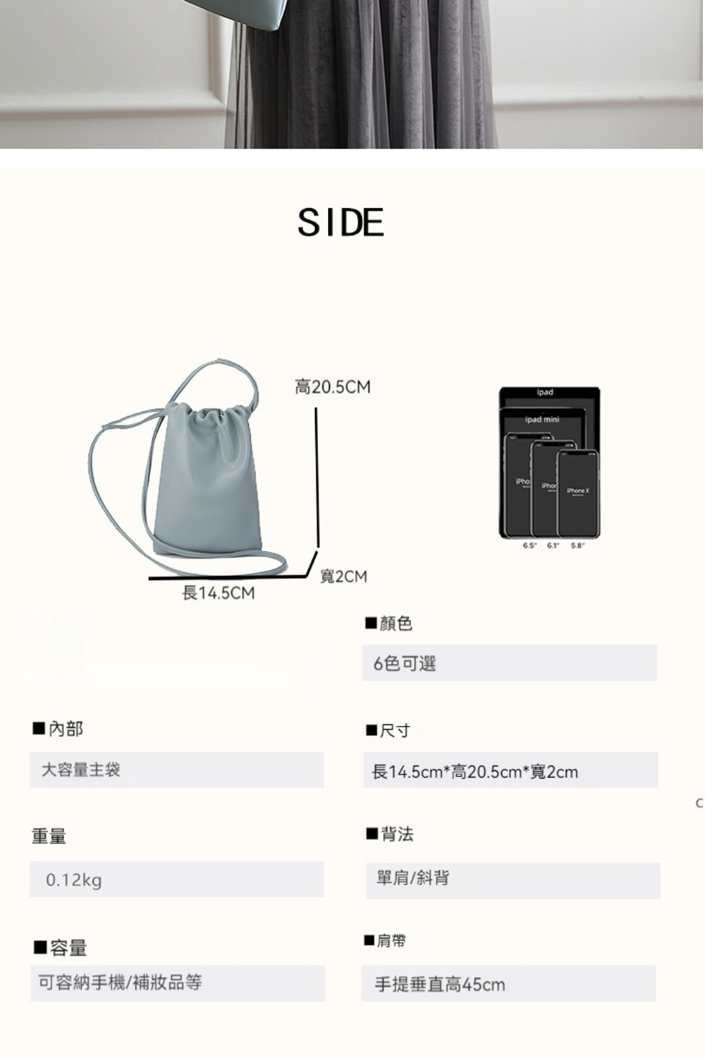 👜容量:可放手機、長夾及其他隨身物品