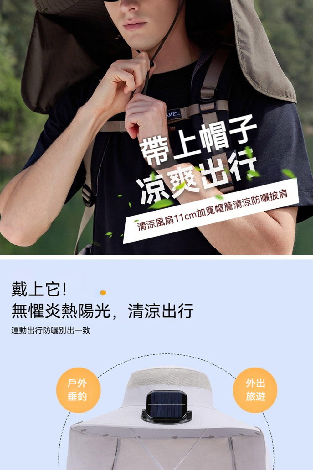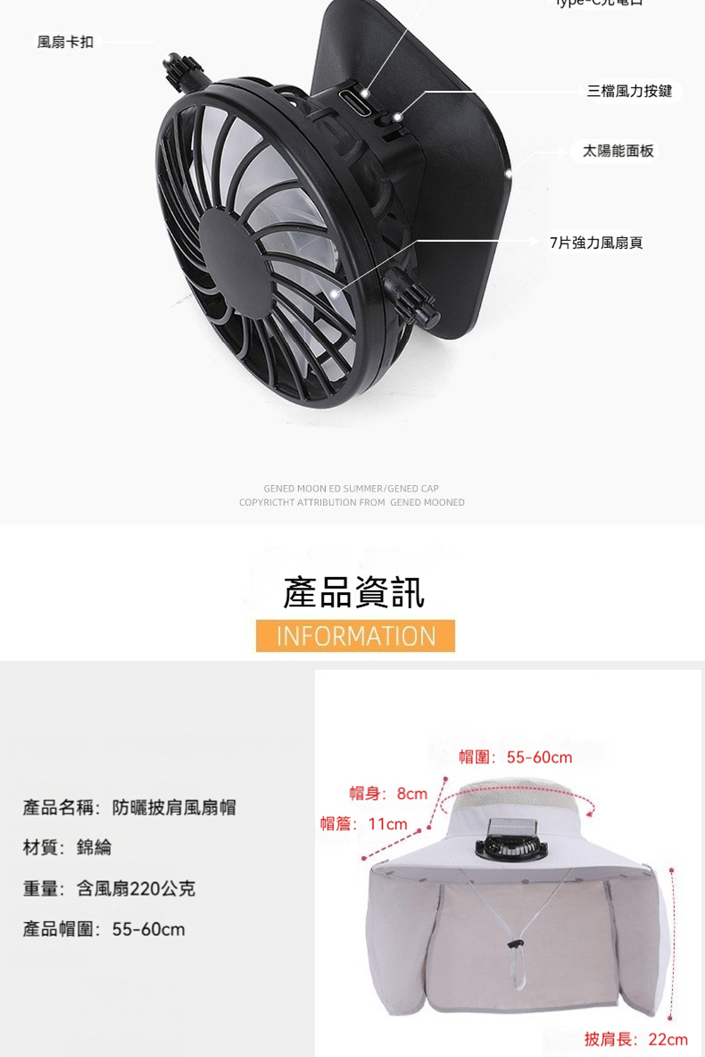 👜尺寸:帽圍55-60公分(附太陽能風扇)