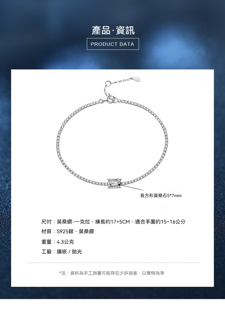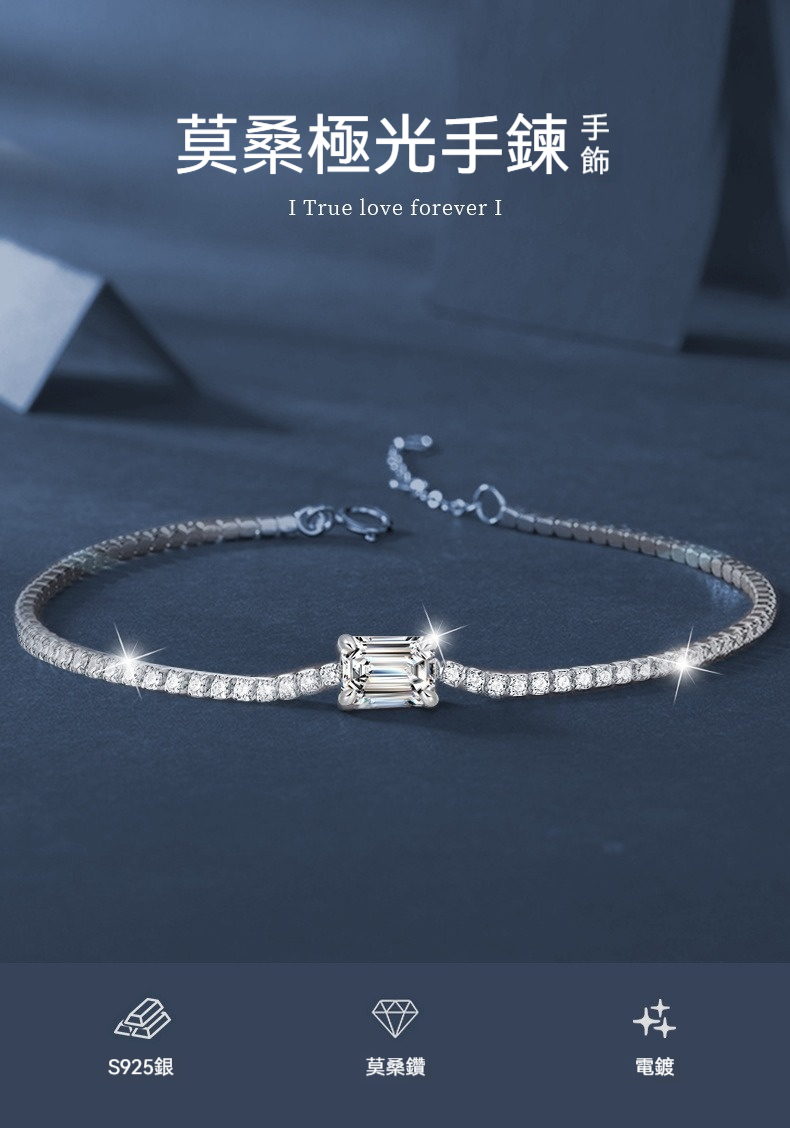 ✨ 商品尺吋:莫桑鑽-一克拉、練長約17+5CM、適合手圍約15~16公分