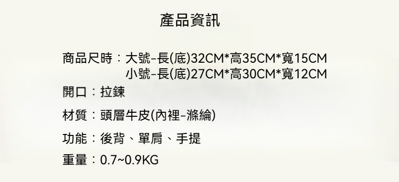 👜商品尺吋:大號- 長(底)32CM*高35CM*寬15CM、小號-長(底)27CM*高30CM*寬12CM