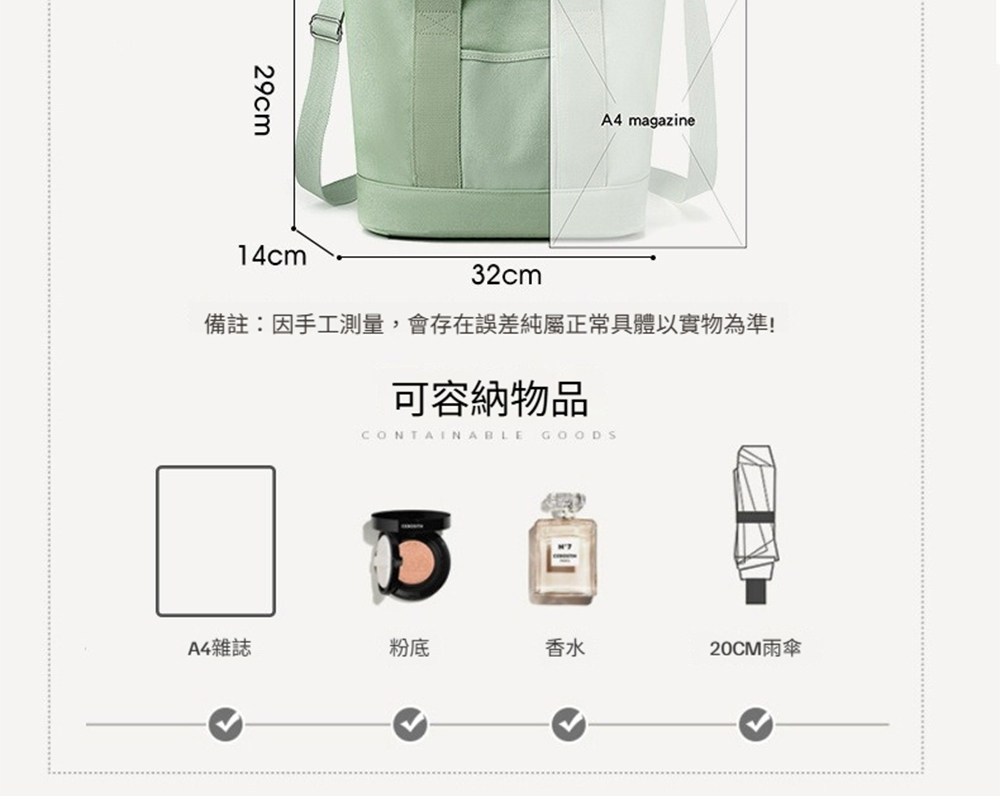👜容量:可放A4、iPad、長夾及其他隨身物品
