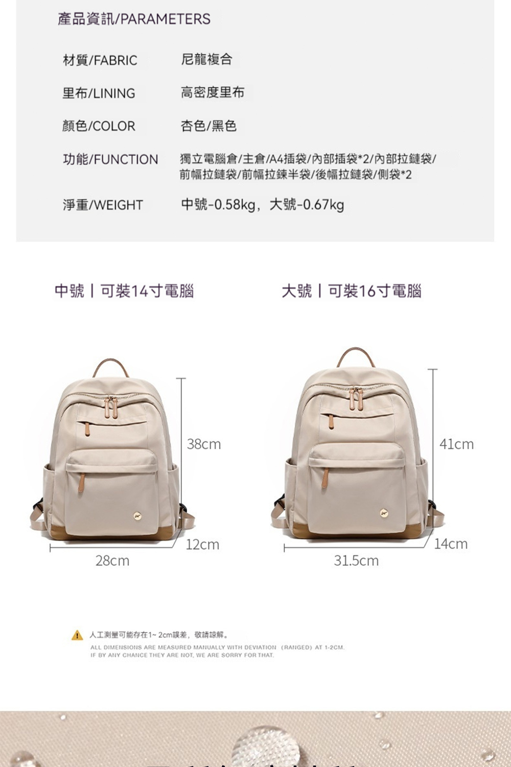 👜容量:可放A4、14吋筆電、長夾及其他隨身物品