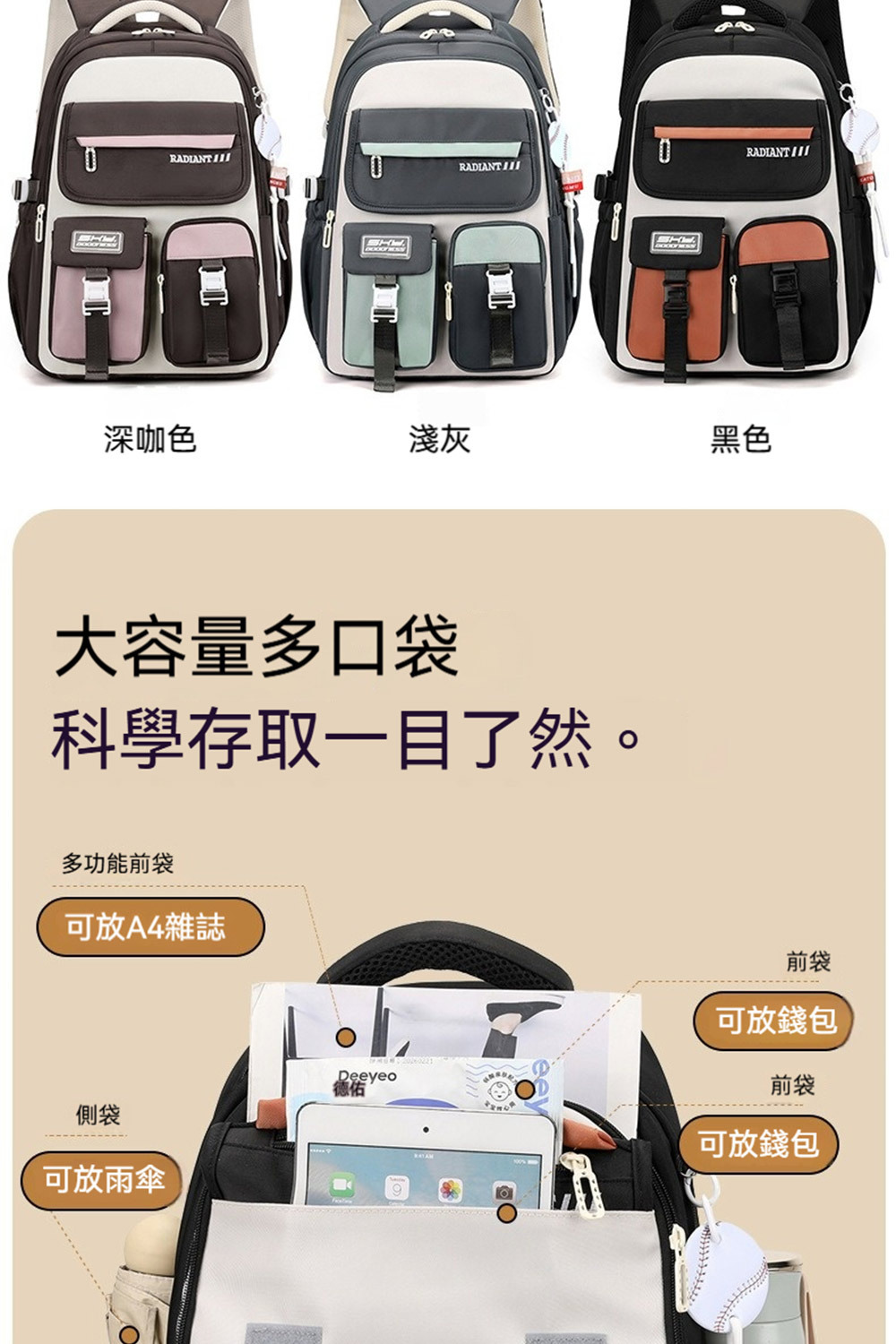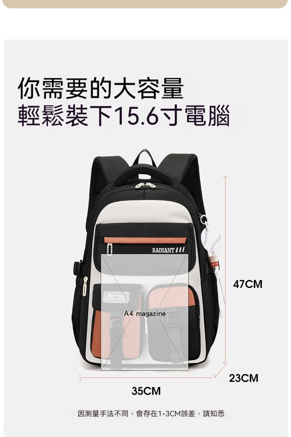 👜容量:可放15.6吋筆電、A4、iPad、長夾及其他隨身物品