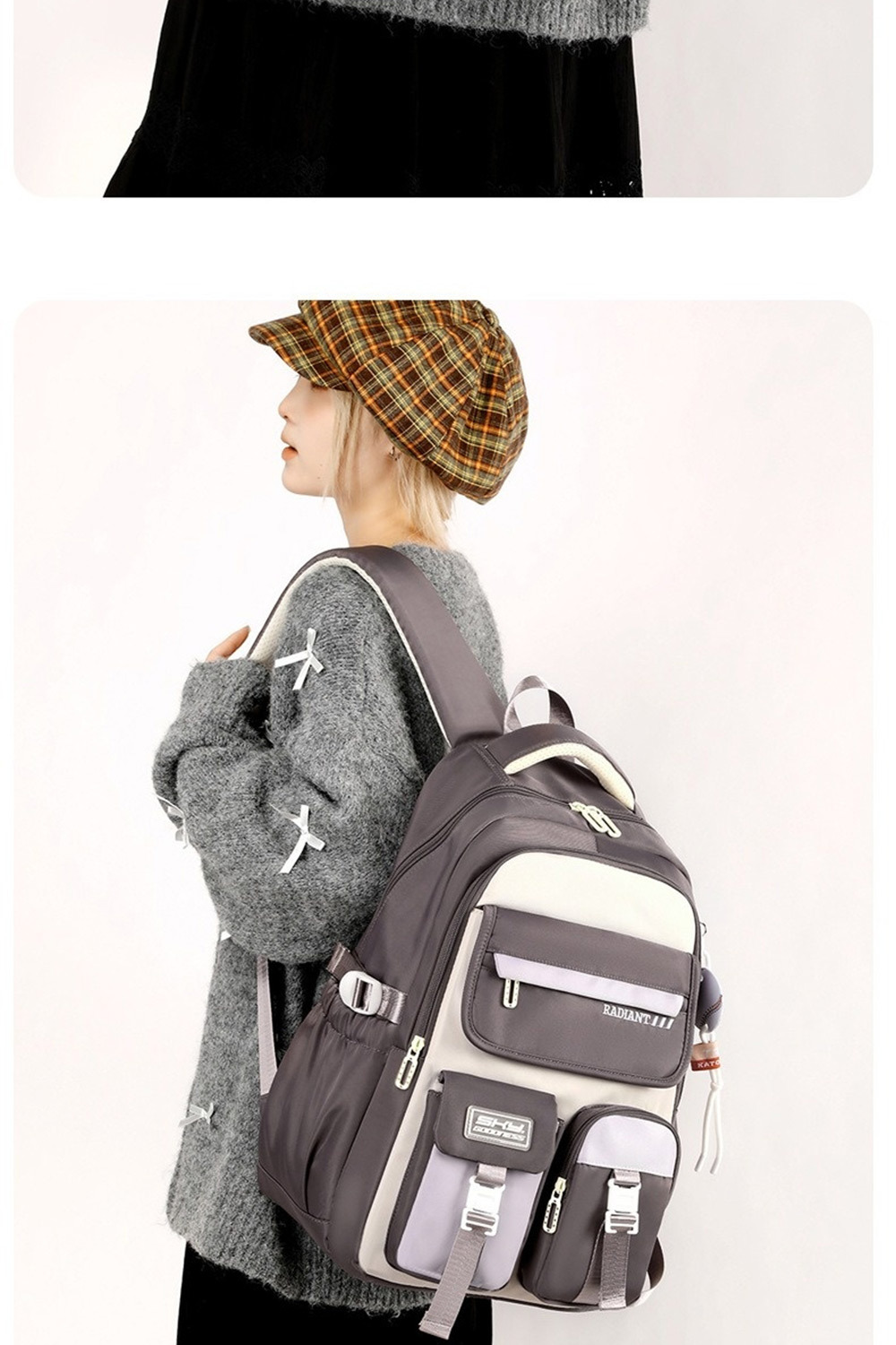 👜結構:主袋、內貼袋*4、副袋、側袋*2、前袋、前拉鍊袋*2、前插扣袋、後拉鍊袋