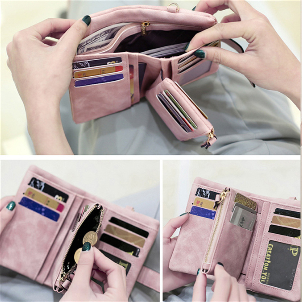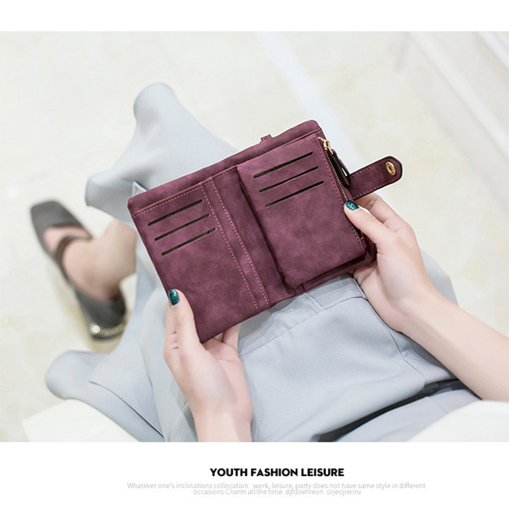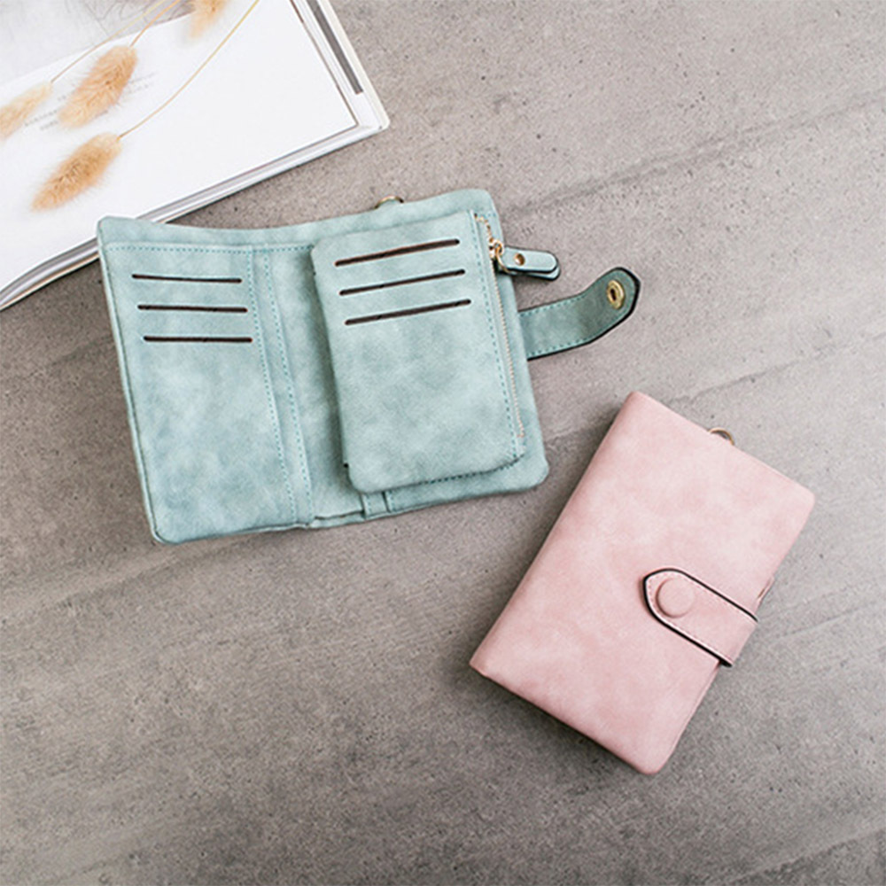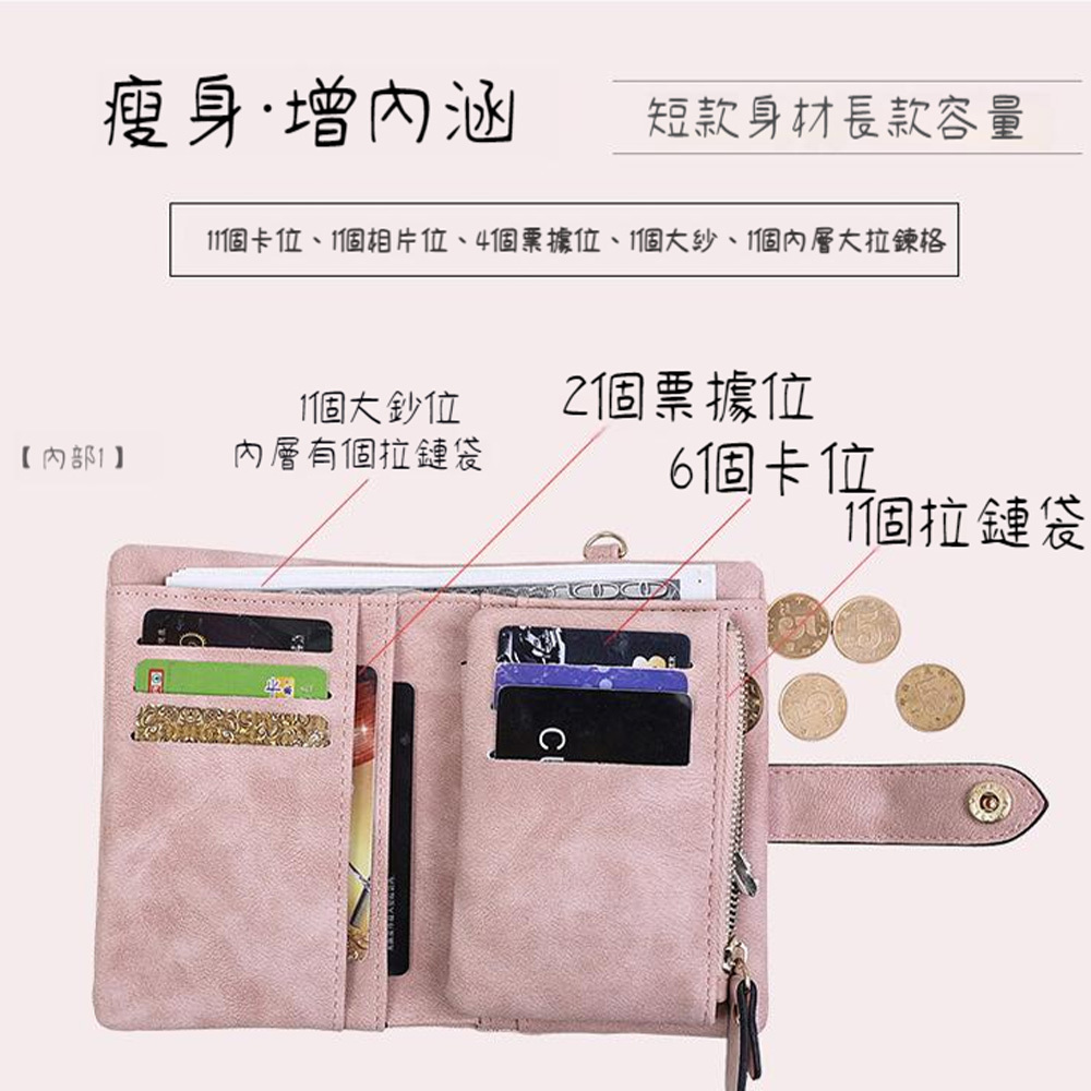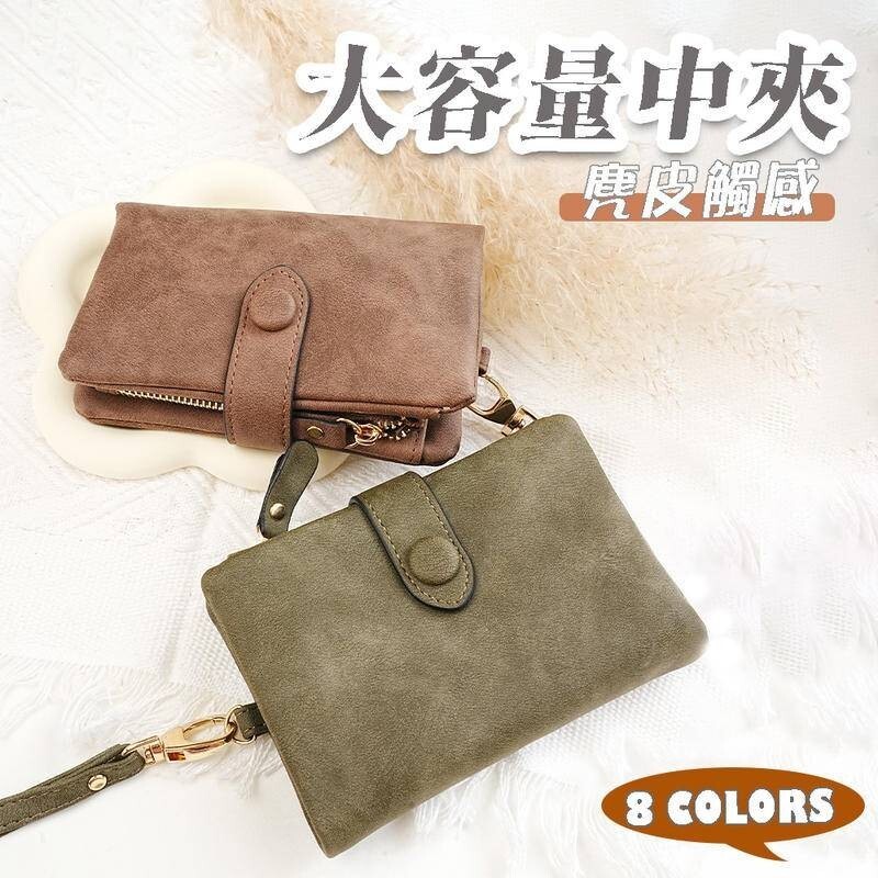 小錢包女 女生皮夾 麂皮磨砂觸感 超級收納 零錢包 女錢包 中夾 小錢包 女皮包 皮夾女 女用中夾 大容量 022