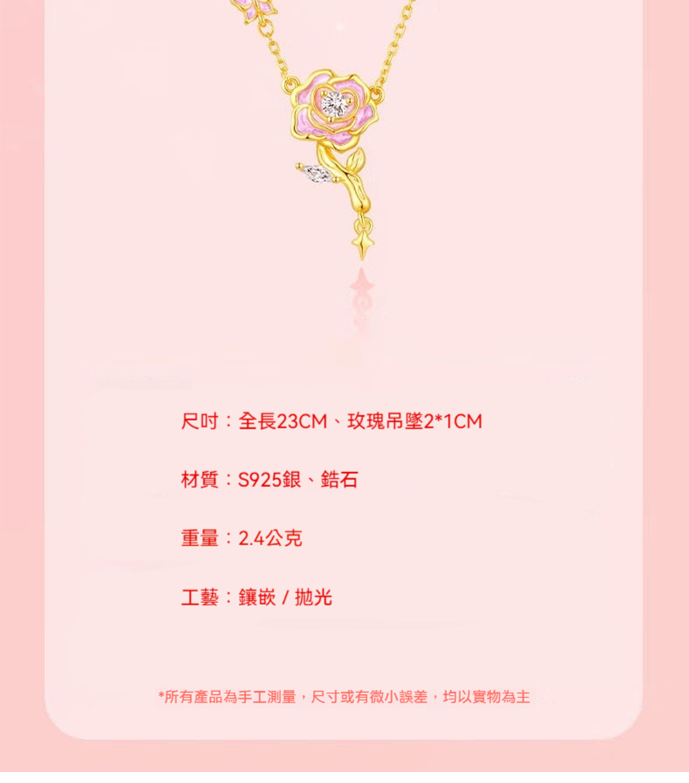 ✨ 商品尺吋:全長23CM、玫瑰吊墜2*1CM