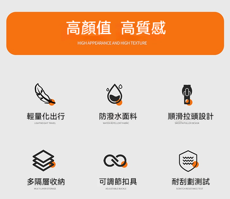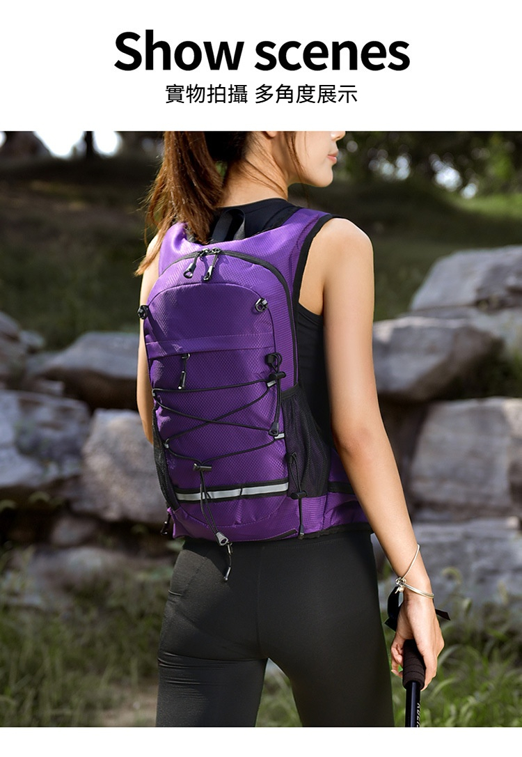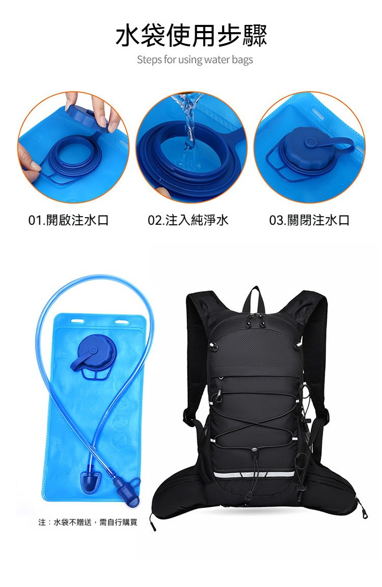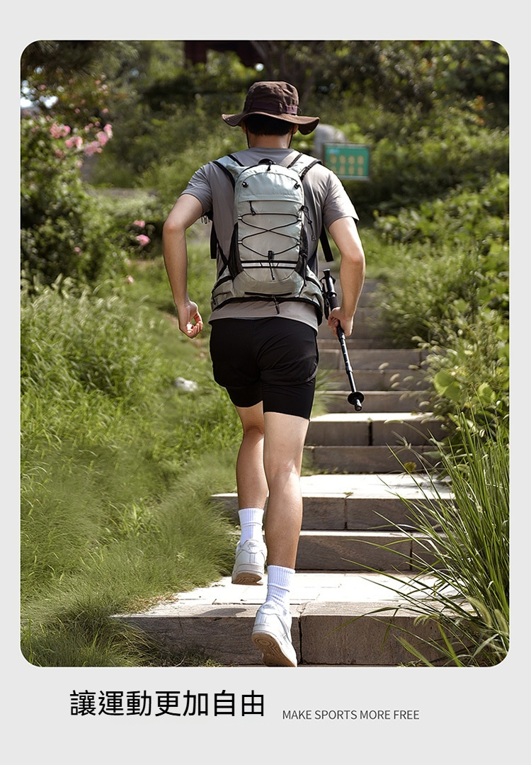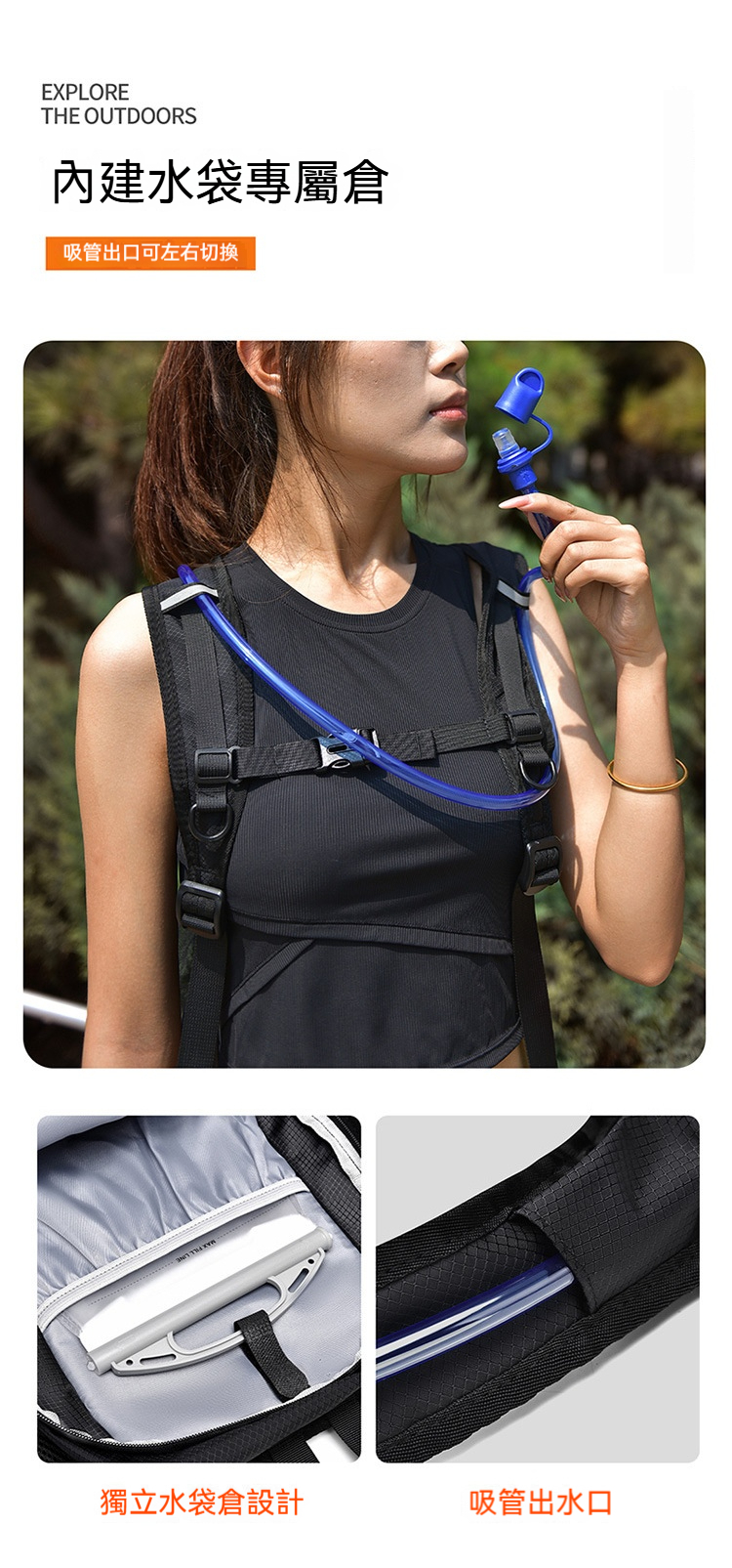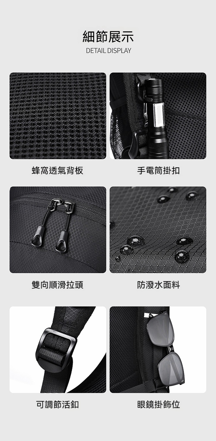 👜結構:主袋、內貼袋、前拉鍊袋、前擴容收納網袋、側袋*2、護腰倉*2