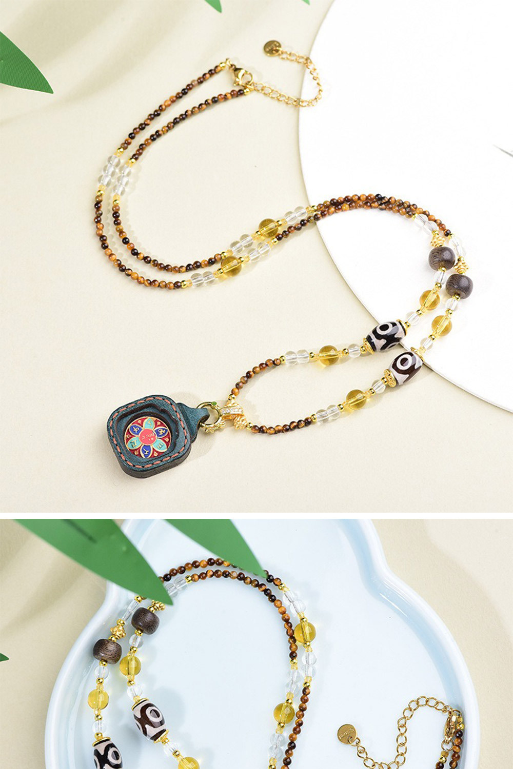 ✨ 材質:虎眼石,頭層牛皮(墜子材質)