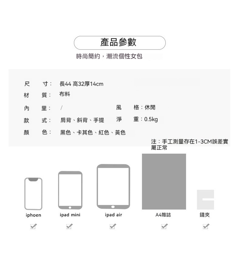 👜商品尺吋:長44公分*寬32公分*厚14公分