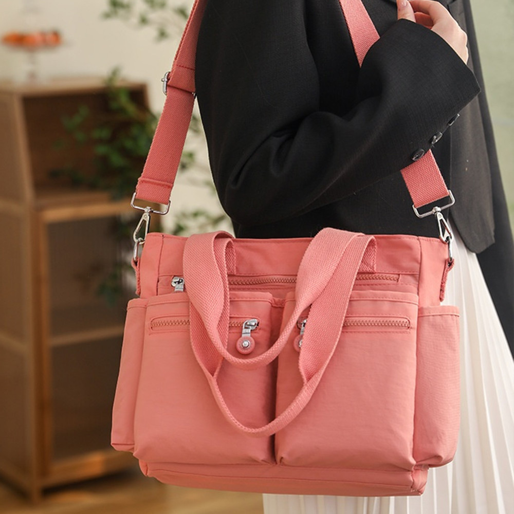 👜結構:主袋、內貼袋*2、拉鍊內貼袋、前置磁吸袋*2、前置拉鍊袋*2、兩側插袋、後幅拉練貼袋