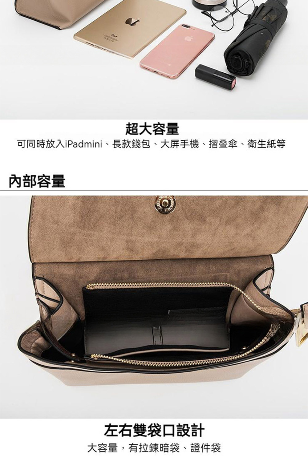 👜結構:主袋.內貼袋.拉鏈暗袋